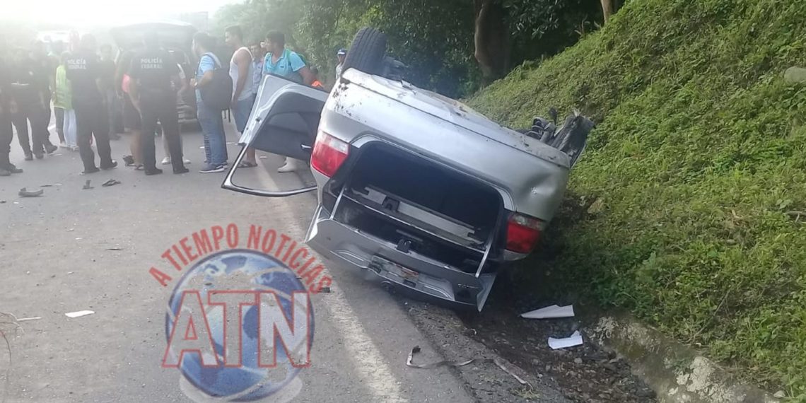 PIJIJIAPAN, CHIAPAS. – La tarde del pasado viernes, un vehículo compacto se volcó en el tramo Carretero Federal Mapastepec – Pijijiapan, en el Kilómetro 148+300, a la altura del rancho las Palmas perteneciente a este Municipio de Pijijiapan.