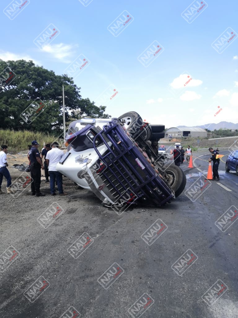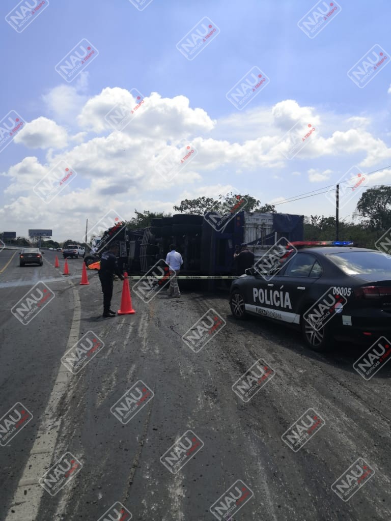 El pesado camión era conducido por Daniel N. de 36 años, resultando con golpes leves, al Lugar arribó protección civil, Policía estatal de tránsito y policía estatal preventiva, quienes acordonaron el área de intervención.