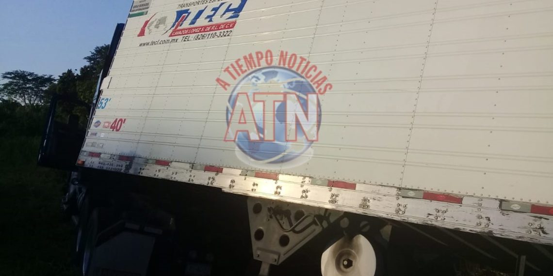 En el lugar se encontró volcado el tráiler con cabezal color azul, con placas de circulación 81-AG-2J de México y caja color blanca placas de circulación 30-UD-7U de México.