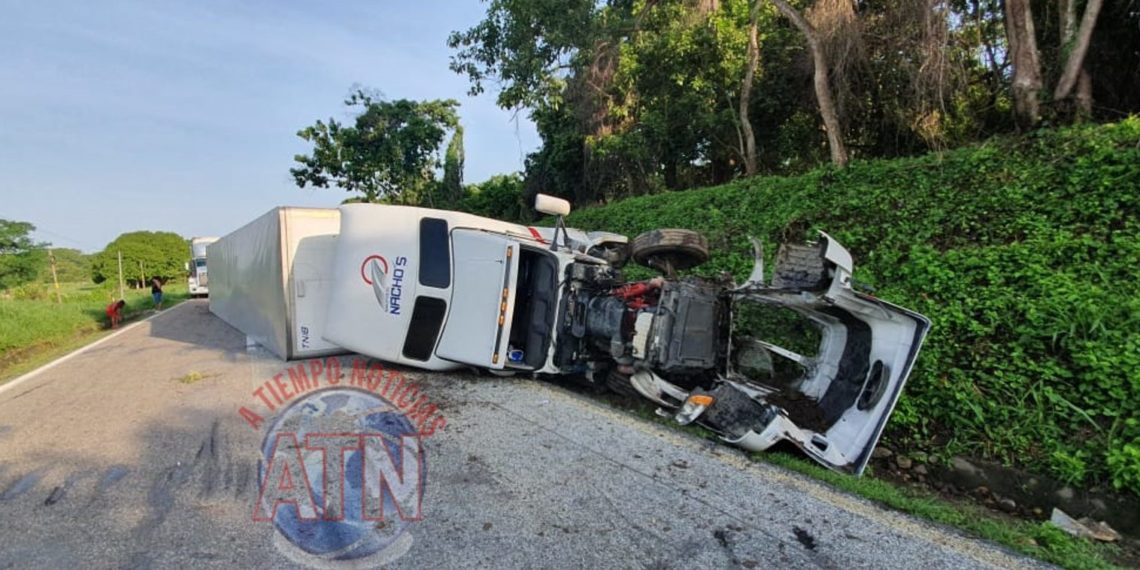 TAPACHULA, CHIAPAS. Accidente vehicular en el tramo carretero Mapastepec – Escuintla, a la altura de la Colonia Simón Bolívar, el conductor perdió el control y terminó volcado.