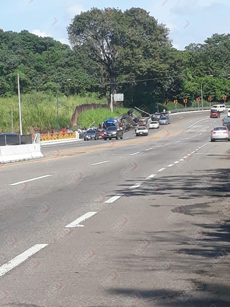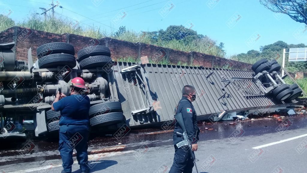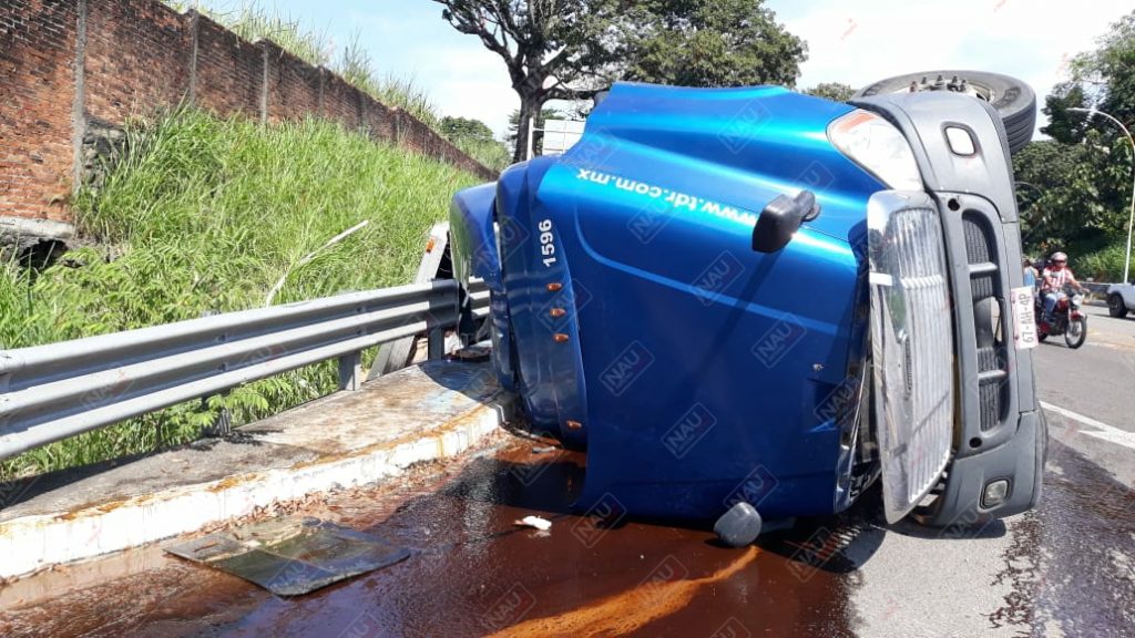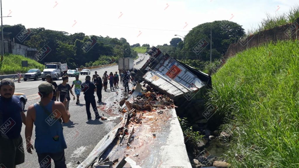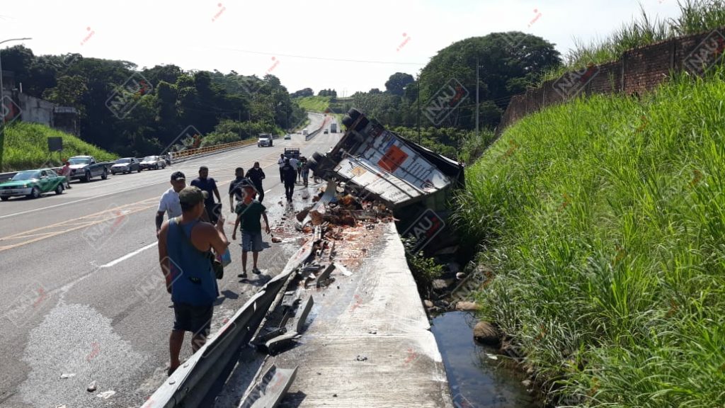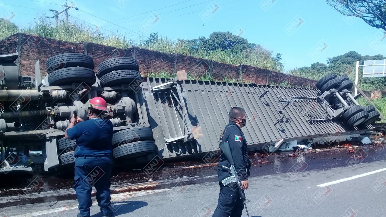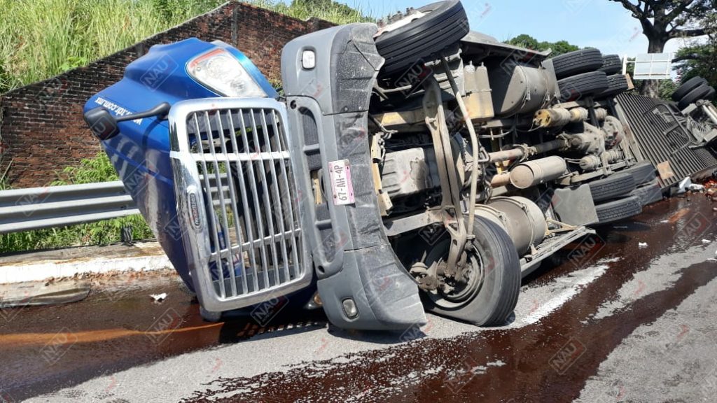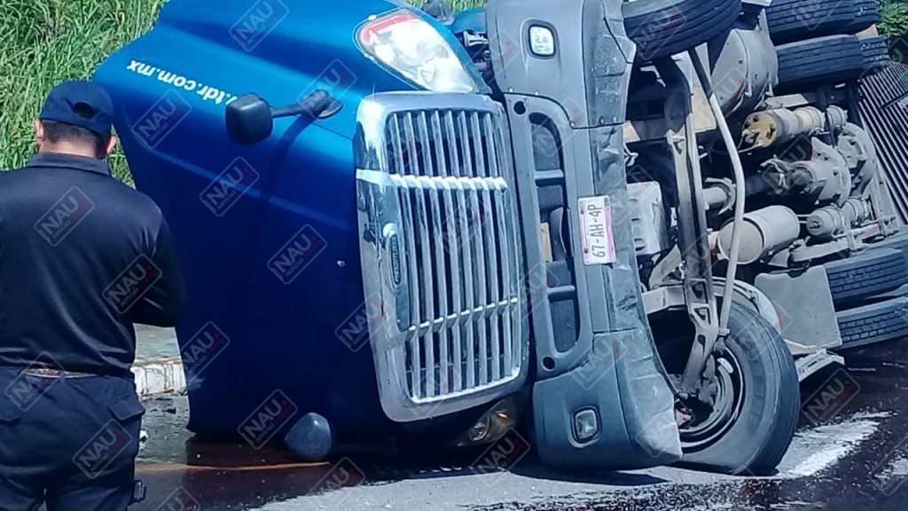 Tapachula, Chiapas. Daños materiales por más de 600 mil pesos, dejó como saldo la volcadura de un tráiler sobre la carretera Tapachula – Suchiate, a la altura de la entrada a la colonia San Antonio Cahoacán.