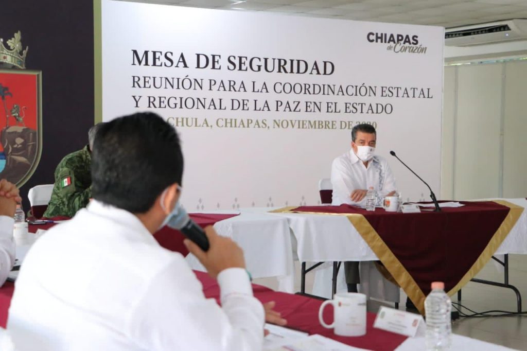 Tuxtla Gutiérrez, Chiapas.- En el marco de la Mesa de Seguridad Estatal y Regional en Tapachula, que encabezó el gobernador Rutilio Escandón Cadenas, el fiscal general Jorge Llaven Abarca expuso la incidencia delictiva general y de alto impacto de la región Soconusco, destacando que derivado del reforzamiento de los Operativos Antipandillas y de Verificación de Bares y Cantinas y Similares se han logrado resultados contundentes en la disminución del índice de delitos, garantizando con ello la seguridad y la tranquilidad de las familias chiapanecas.