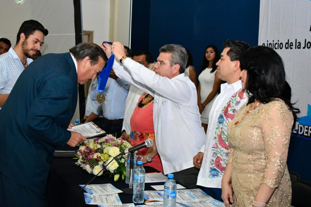 Durante la ceremonia, el Secretario General de Gobierno, acompañado de la presidenta de la Comisión Ejecutiva Nacional de la ANLM, Rosalía Buaún Sánchez, entregó merecidos reconocimientos por su talento y trayectoria profesional de 50 años a tres locutores íconos en la entidad: Augusto Solórzano López, Roberto de los Santos Cruz y Salvador Camacho Corzo.