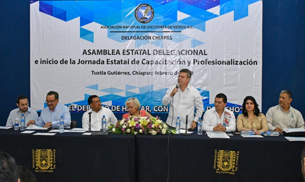 “Estamos en la disposición de caminar siempre con una puerta abierta para todos ustedes y fortalecer este ejercicio de gobierno democrático, en donde también los profesionales de la locución contribuyen a hacer un Chiapas más grande”, afirmó.