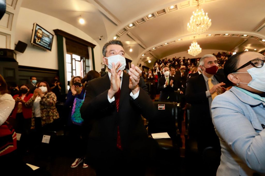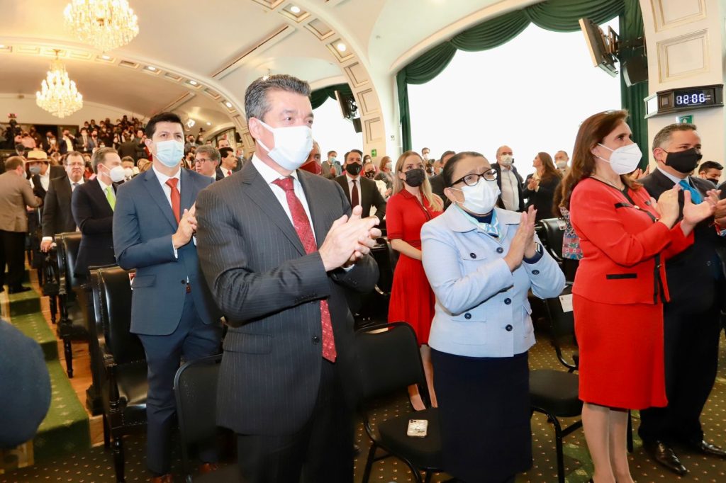 El gobernador Rutilio Escandón Cadenas asistió a la entrega de la Medalla de Honor Belisario Domínguez 2021, máxima distinción que otorga el Senado de la República a mexicanas y mexicanos que se han distinguido por su ciencia o su virtud en grado eminente, como servidores de la patria o de la humanidad, a la senadora decana Ifigenia Martínez Hernández, así como en modalidad post mortem al doctor Manuel Velasco-Suárez.