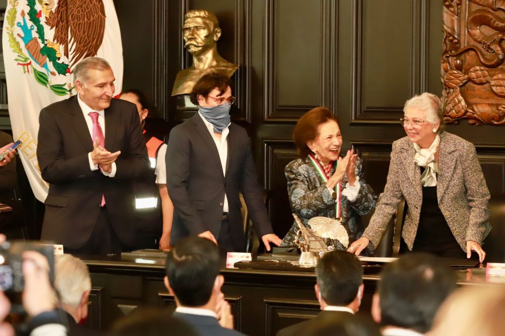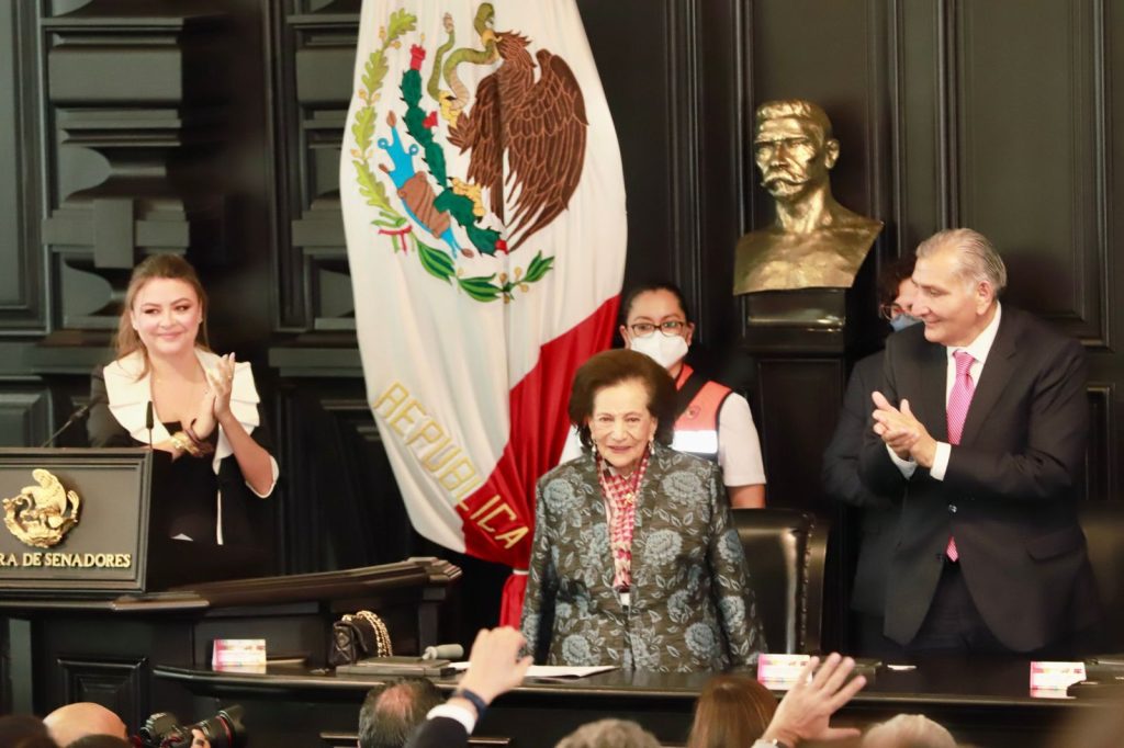 “Su labor destacable y lucha incansable a favor de la democracia de México, de la justicia, la igualdad de género y los derechos humanos, abriendo brecha para que las mujeres puedan escalar y entrar a diferentes ámbitos, la hacen gran merecedora de este galardón que acuña el nombre de Belisario Domínguez”, manifestó.