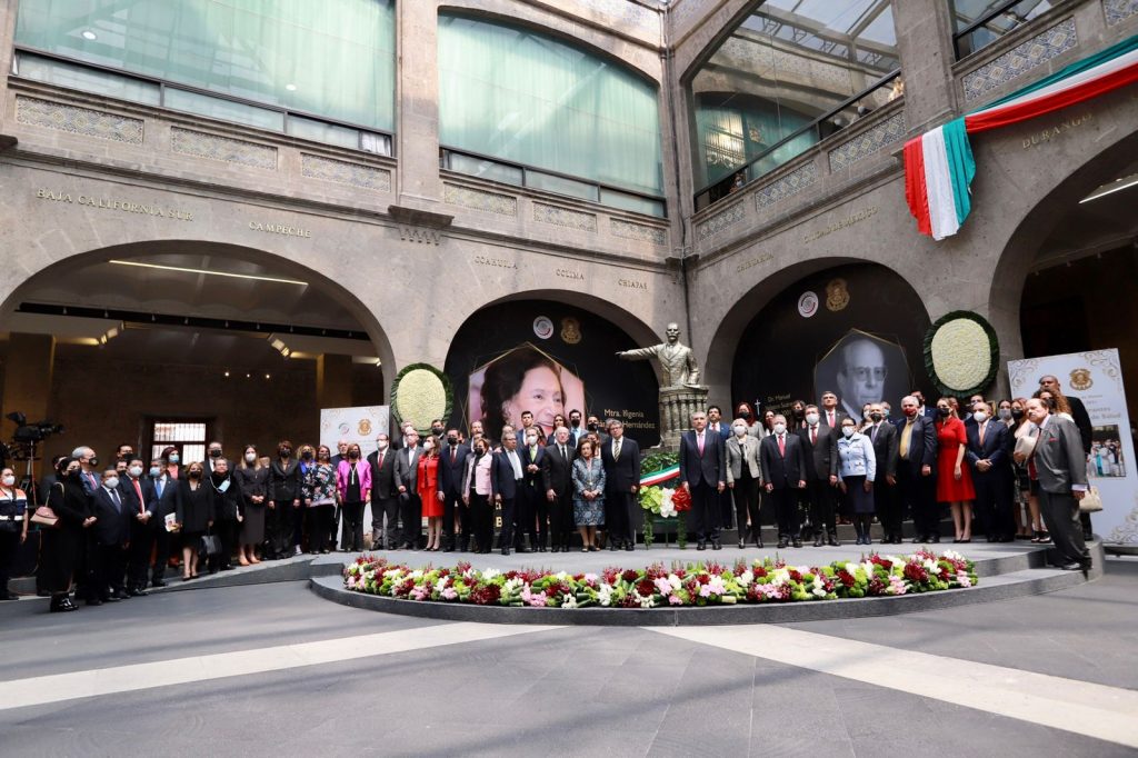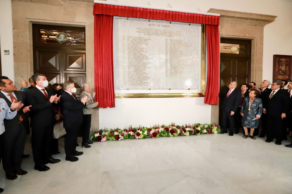 Finalmente, se hizo un minuto de silencio para honrar la memoria de integrantes de la orden mexicana de la Medalla Belisario Domínguez que han fallecido, luego se develó con letras doradas los nombres de Ifigenia Martínez Hernández y Manuel Velasco Suárez en el Muro de Honor y, en el Patio Central, se montó una guardia de honor ante la estatua de Belisario Domínguez.