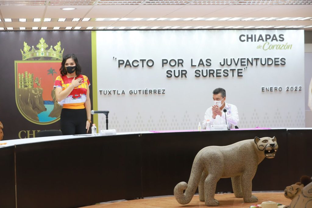 En el marco de la primera reunión de trabajo “Pacto por las Juventudes Sur-Sureste”, el gobernador Rutilio Escandón Cadenas destacó que en este proceso histórico de la Cuarta Transformación de la vida pública del país, que encabeza el presidente de la República, Andrés Manuel López Obrador, la participación de las y los jóvenes representa la esperanza de la nación para transitar hacia el bienestar, el progreso y la justicia social de los pueblos y las comunidades de Chiapas y de México.