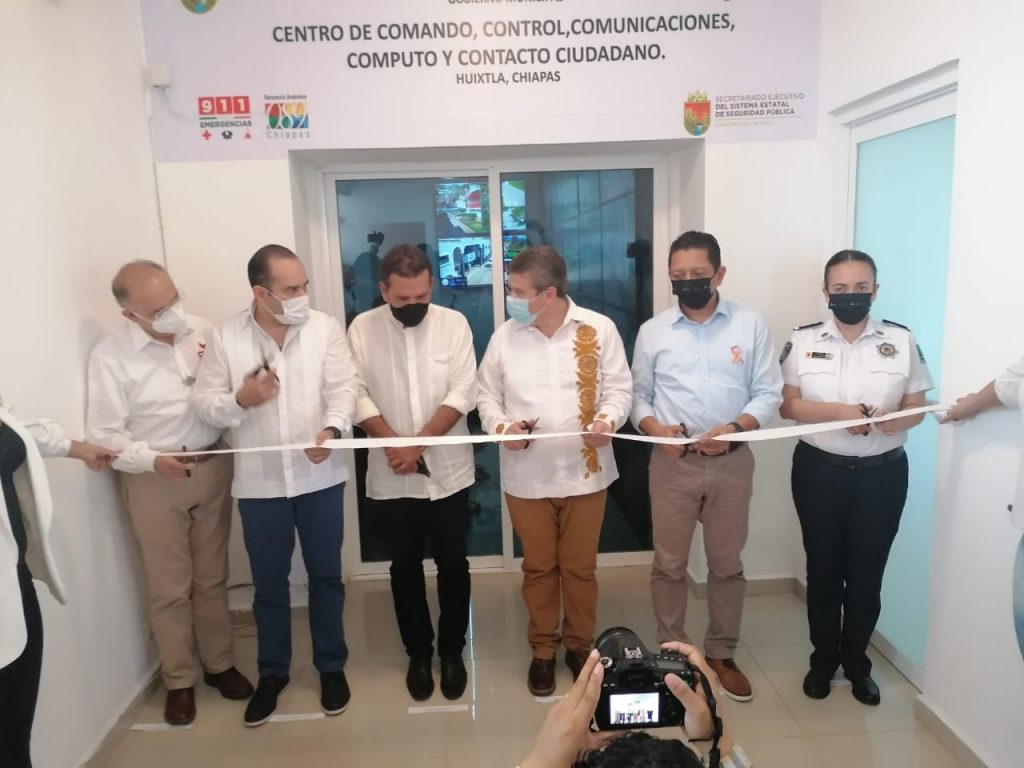 Huixtla, Chiapas; 03 de noviembre de 2020.- El secretario general de Gobierno, Ismael Brito, asistió a la apertura del Centro de Monitoreo y Video Vigilancia Municipal de Huixtla, y a la “Entrega de Equipamiento para el Fortalecimiento y la Dignificación de las y los Policías Municipales 2020”.