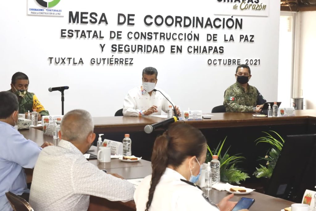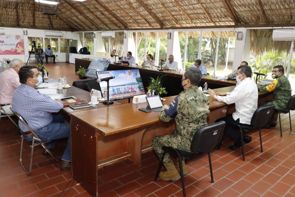 Durante la Mesa de Seguridad, el gobernador Rutilio Escandón Cadenas informó que avanza con éxito la vacunación contra el COVID-19 en Chiapas, muestra de ello es que durante las últimas horas se registró una gran respuesta de la población, tanto en los centros de vacunación, así como a través de las brigadas que recorren casa por casa y negocio por negocio.
