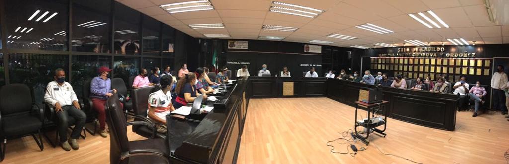 Con la presencia de los integrantes del Ayuntamiento municipal, encabezados por su titular, a través de la plataforma zoom en conjunto con dependencias federales y estatales, se acordó reforzar las medidas preventivas para evitar riesgos en caso de inundación o encharcamientos, al encontrarse en alerta naranja por presencia de precipitaciones pluviales.