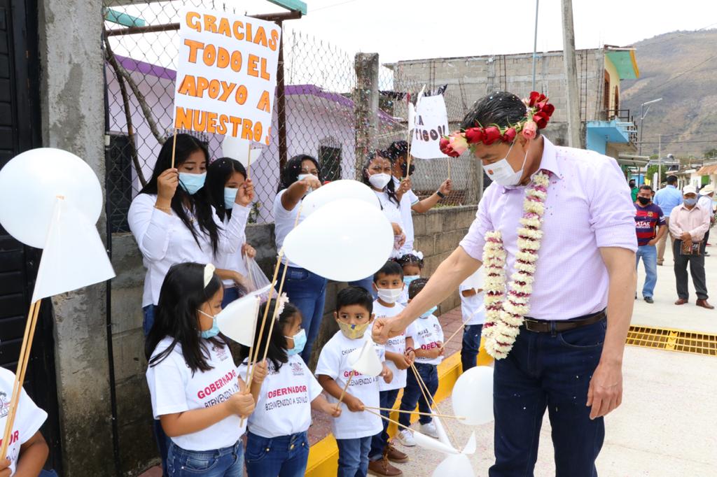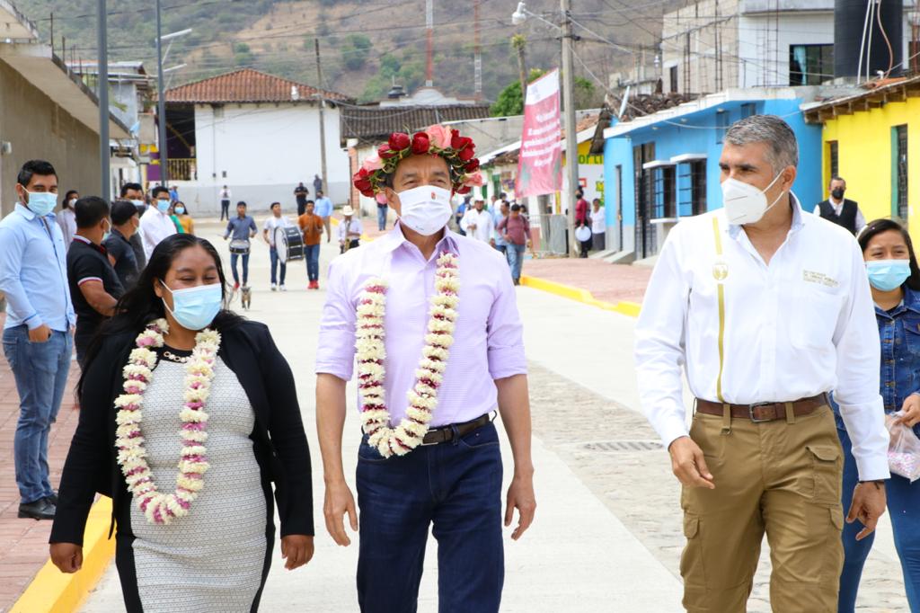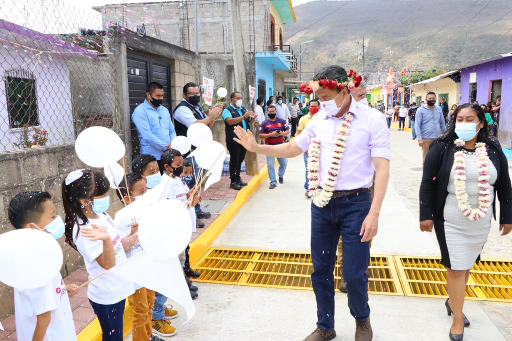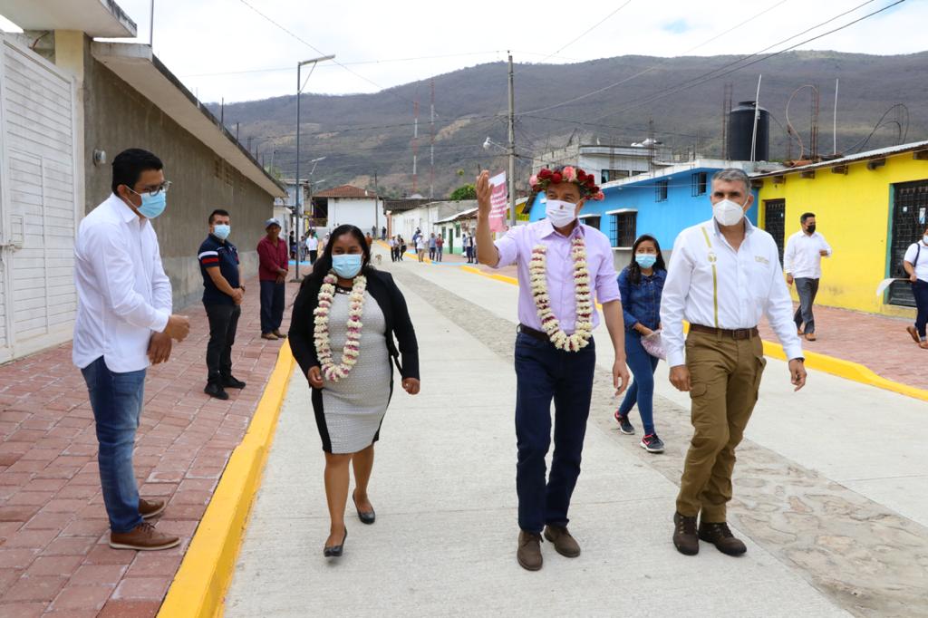 En tanto, el secretario de Obras Públicas, Ángel Carlos Torres Culebro, puntualizó que de esta forma se cumple la instrucción de generar mejores condiciones de vida para la gente, pues con la rehabilitación que incluye concreto hidráulico, piedra artesanal, luminarias solares y banquetas, esta calle se convierte en una vialidad principal. Agregó que también se ejecuta la iluminación solar de la avenida central de Soyaló.