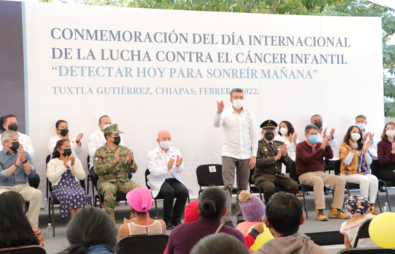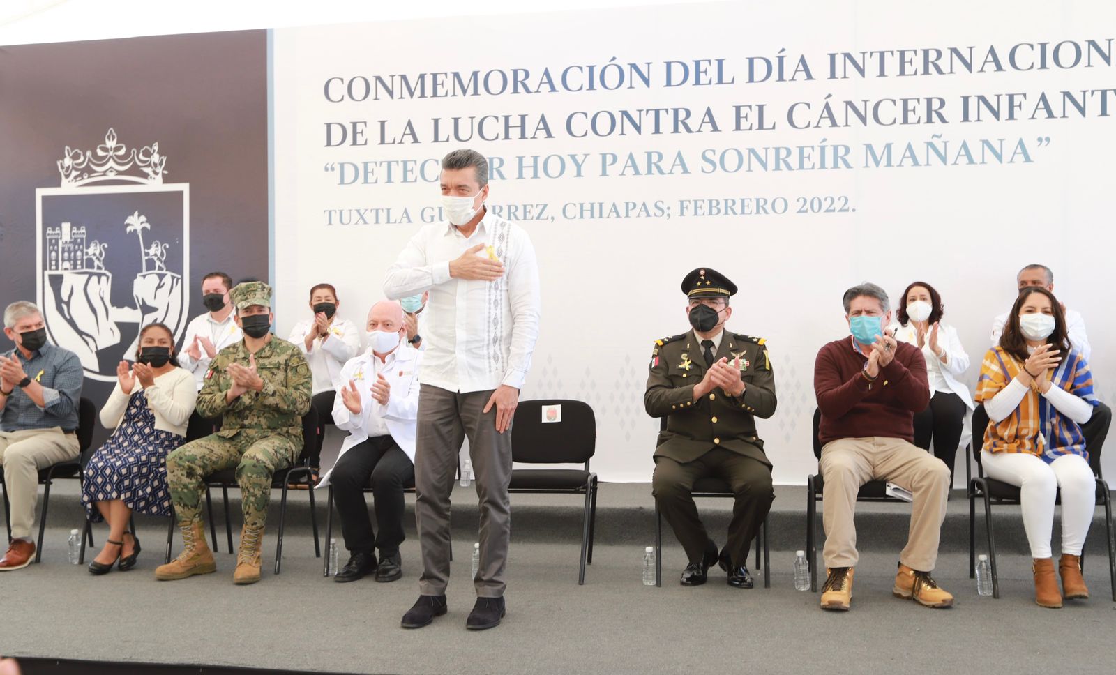 En el marco de la conmemoración del Día internacional de la lucha contra el cáncer infantil, bajo el lema “Detectar hoy para sonreír mañana”, el gobernador Rutilio Escandón Cadenas sostuvo que en Chiapas se hace todo lo humanamente posible para que no falte nada en materia de salud, por eso se busca garantizar que los hospitales y clínicas cuenten con equipamiento, medicamentos e insumos, así como el personal de salud necesario para cuidar la vida de las y los chiapanecos sin distinción.