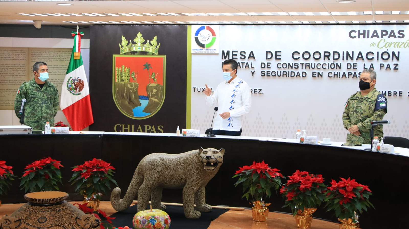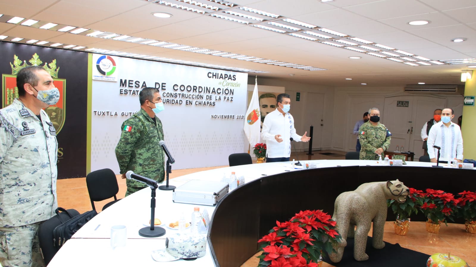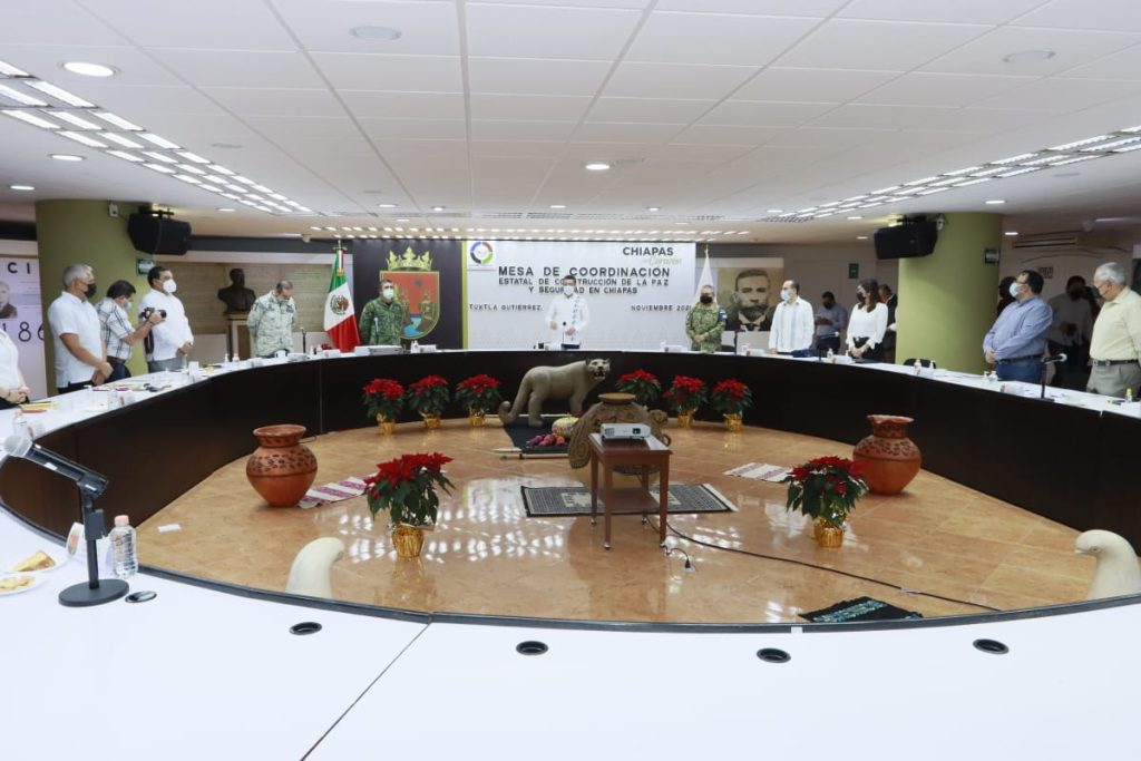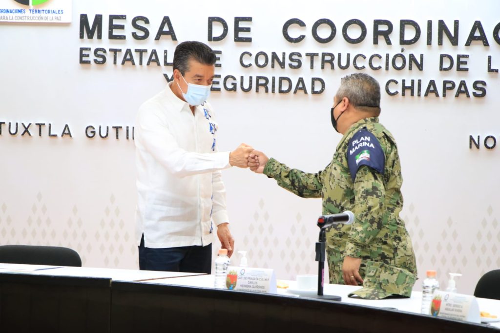 “Nuestro mayor deseo es que las chiapanecas y los chiapanecos, sin distinción, puedan vivir bien, en paz y armonía; por eso estamos todos los días sumados y coordinados la Secretaría de la Defensa Nacional, Marina, Guardia Nacional, la Fiscalía General del Estado, la Secretaría de Seguridad y Protección Ciudadana, aunado al Consejo de Seguridad Estatal y Prevención Social”, apuntó.