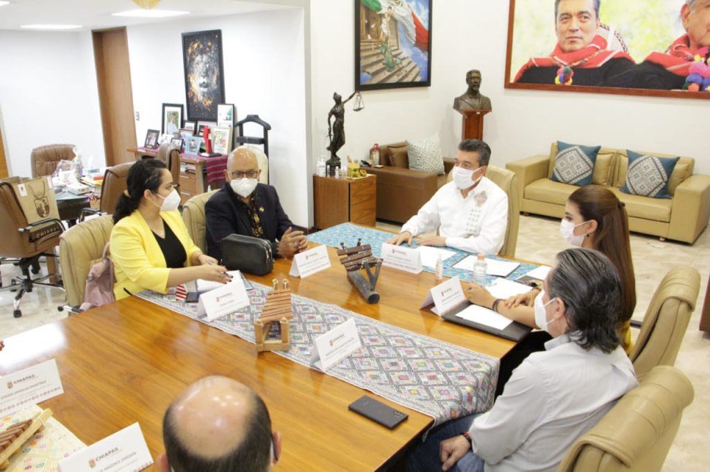 Durante el encuentro realizado en Palacio de Gobierno, el mandatario mencionó la importancia de que la entidad fortalezca sus oportunidades de comercio exterior porque de esta manera se brinda un mayor impulso al desarrollo, bienestar y seguridad de las y los chiapanecos.
