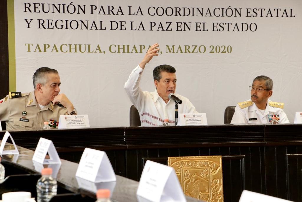 Tuxtla Gutiérrez, Chiapas. – En la Mesa de Seguridad Estatal y Regional que encabezó el gobernador Rutilio Escandón Cadenas en la presidencia municipal de Tapachula, el fiscal general Jorge Luis Llaven Abarca destacó los resultados contundentes de los operativos Antipandillas y Frontera Segura implementados en la Región Costa Soconusco, así como el apoyo incondicional de la Guardia Nacional, Ejército Mexicano y Marina para mantener la paz en la entidad.