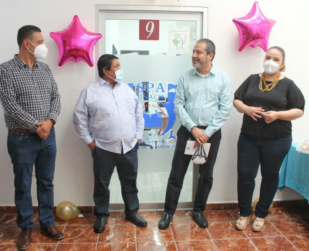 Tuxtla Chico, Chiapas a 16 de noviembre de 2021. El presidente de Tuxtla Chico, Julio Enrique Gamboa Altúzar asistió como invitado a la inauguración de las oficinas del Spaunach en Tapachula, en donde estuvo presente el rector de la UNACH, Carlos Natarén Nandayapa y el secretario general del Sindicato del Personal Académico de la Universidad Autónoma de Chiapas, Héctor de León Gallegos.