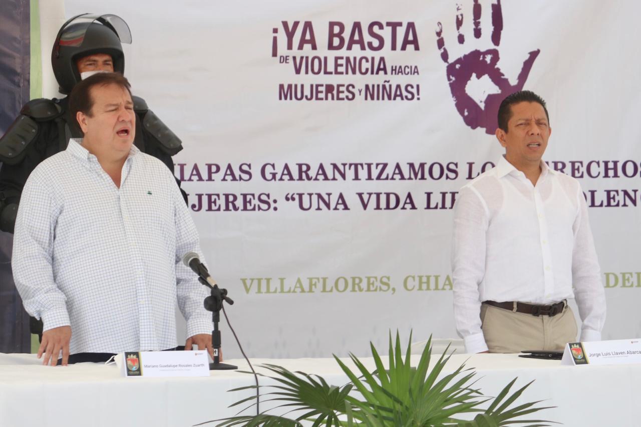 El responsable de la procuración de justicia en Chiapas acompañado por Mariano Guadalupe Rosales Zuarth, presidente municipal de Villaflores; Sergio Alejandro Aguilar Rivera, secretario Ejecutivo del Sistema Estatal de Seguridad Pública; y Michelle Domínguez Gordillo, coordinadora de la Alerta de Violencia de Género; expresó que el gobernador Rutilio Escandón Cadenas ha instruido a todo su gabinete a coadyuvar en las estrategias de prevención y combate de conductas delictivas.