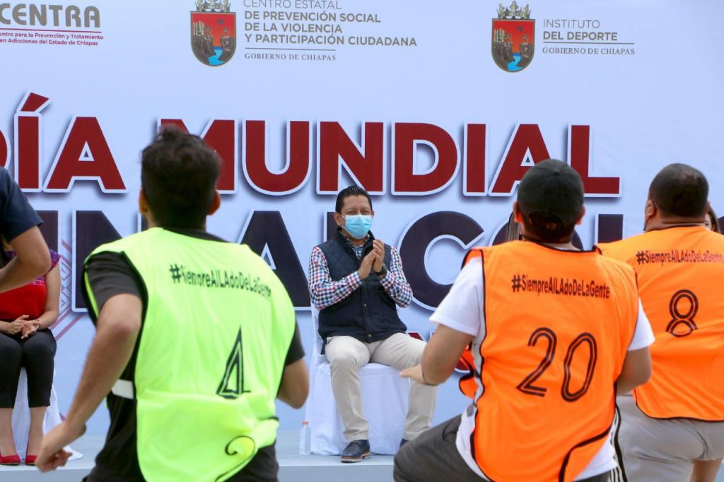 Tuxtla Gutiérrez, Chiapas.- La Fiscalía General del Estado (FGE) conmemoró el Día Mundial sin Alcohol con el Programa de Actividades Deportivas y Recreativas del Centro para la Prevención y Tratamiento en Adicciones (CENTRA) y el Pacto en Materia de Prevención con el Instituto del Deporte (INDEPORTE), en la cual el fiscal general Jorge Llaven Abarca ratificó su compromiso de trabajar en unidad y coordinación con la Federación, el Estado y los Municipios para impulsar y fortalecer acciones focalizadas en prevenir y disminuir su consumo en Chiapas.