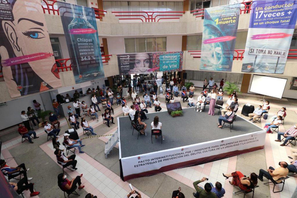 En esta conmemoración, el fiscal general Jorge Llaven Abarca encabezó el Pacto en Materia de Prevención con el Instituto del Deporte (INDEPORTE) a cargo de la directora Tania Valeria Robles Velázquez, donde resaltó que como lo ha instruido el mandatario estatal está trabajando de la mano con todas las instituciones: “Este es un compromiso para proteger y salvaguardar lo más valioso que tiene Chiapas, que es su niñez y su juventud”.