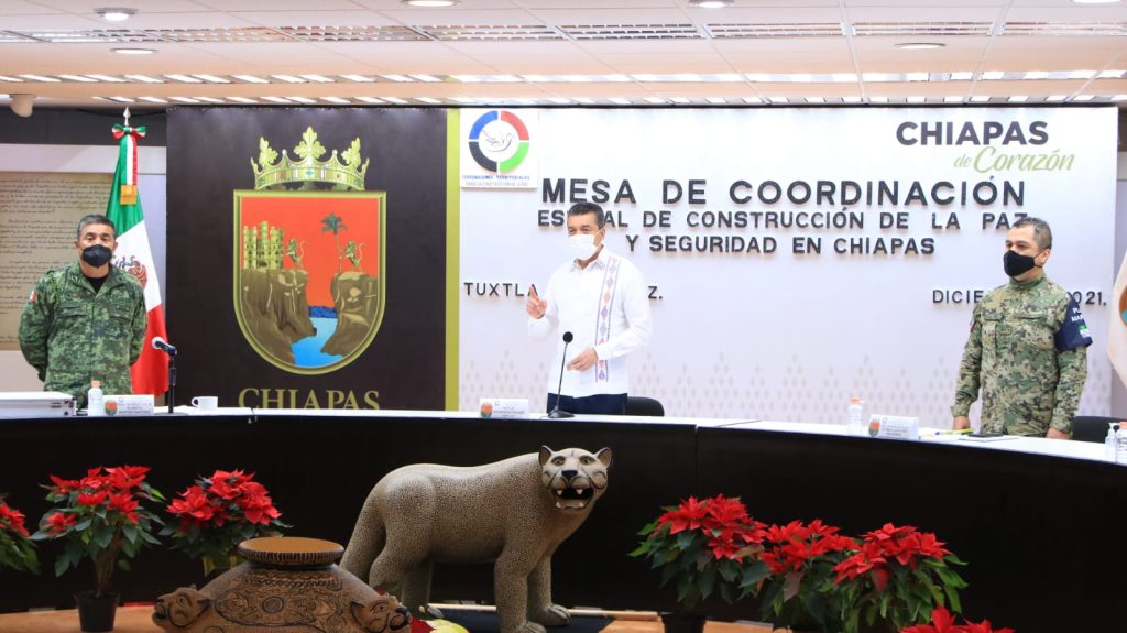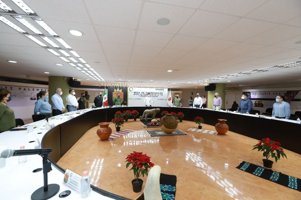 Durante la Mesa de Seguridad, el gobernador Rutilio Escandón Cadenas informó que han arribado a Chiapas 50 mil vacunas de la marca AstraZeneca y 97 mil 110 dosis de Pfizer, para avanzar en la protección de la población, por lo que insistió en el llamado respetuoso a las chiapanecas y los chiapanecos a vacunarse contra el COVID-19, a fin de cuidar la salud y la vida, tanto propia como de los seres queridos.