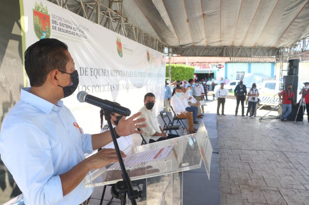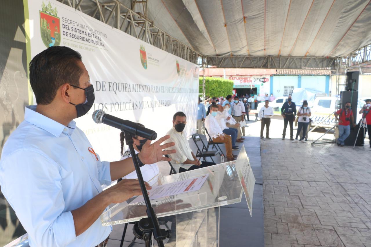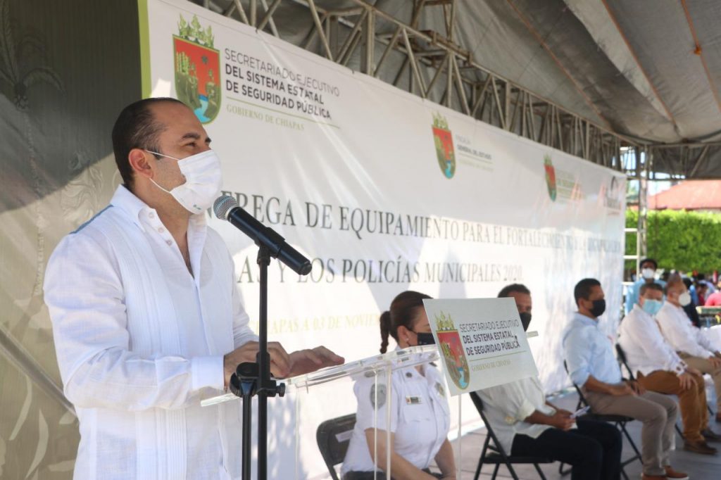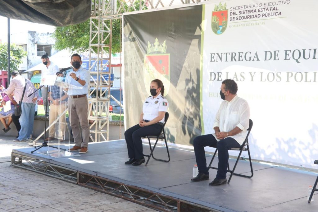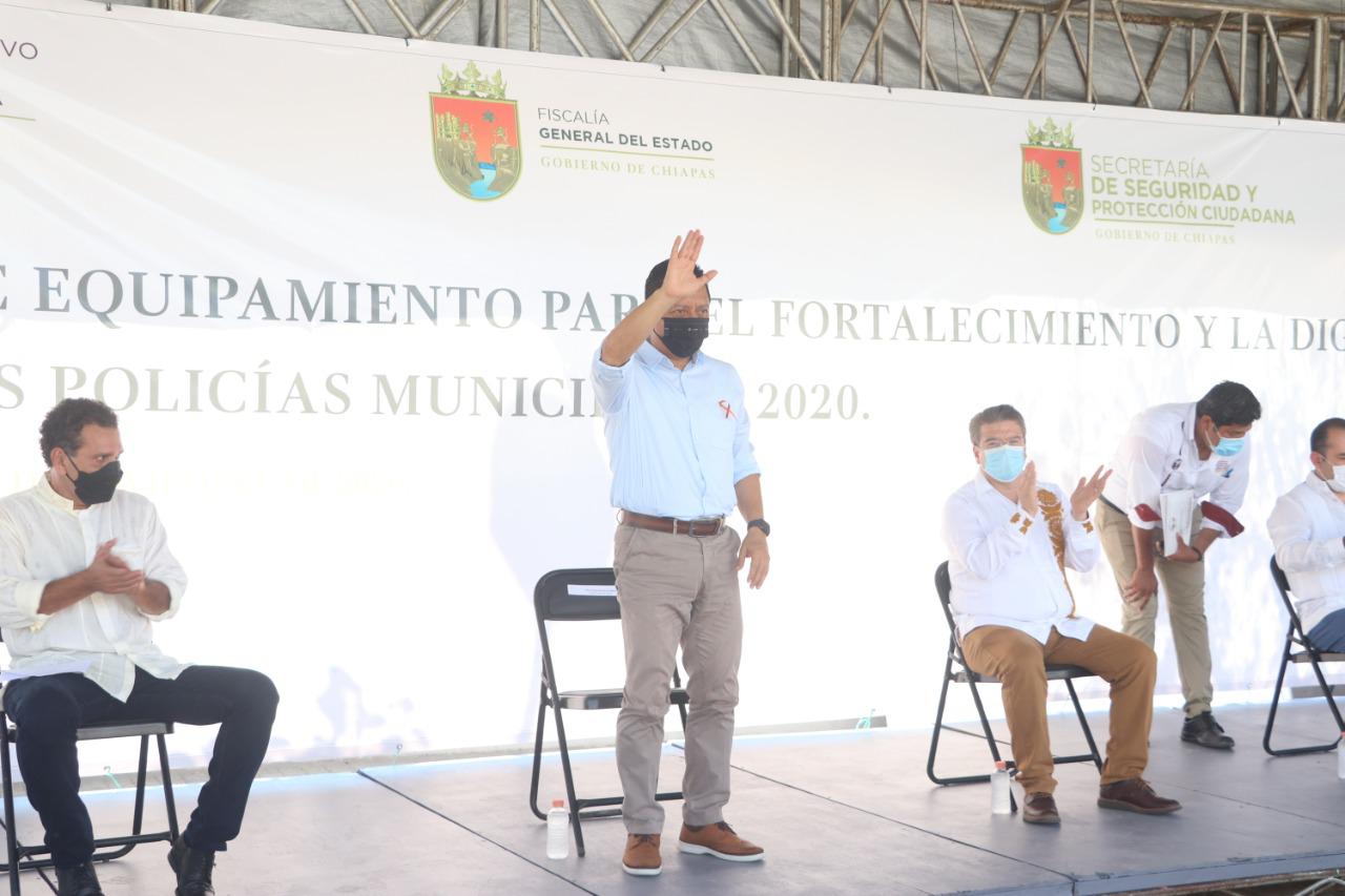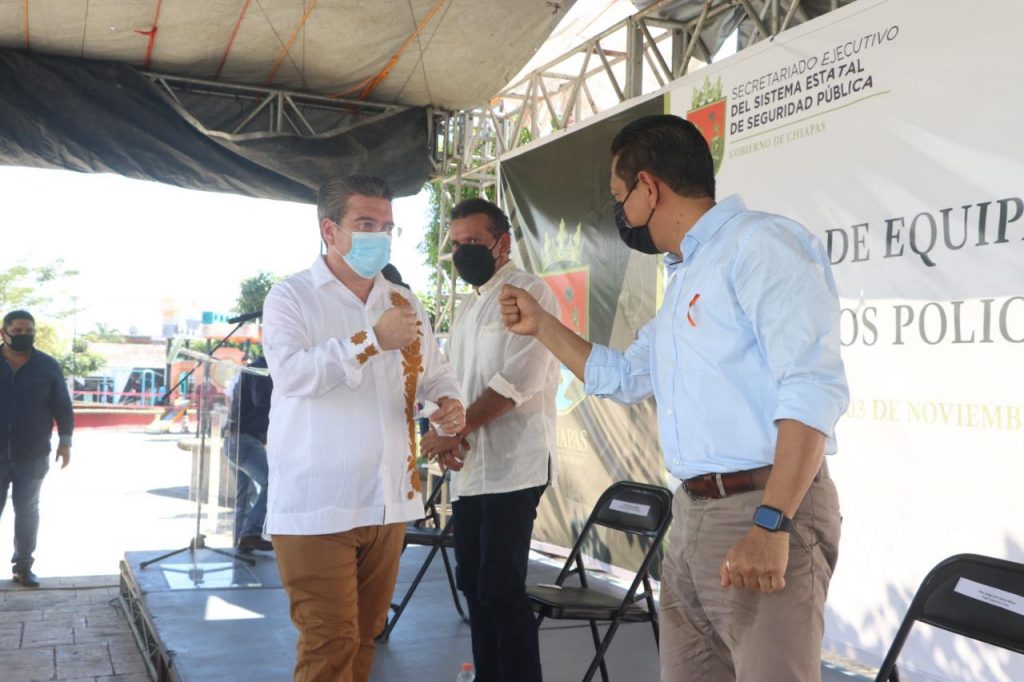 Por su parte, José Luis Laparra Calderón, presidente municipal de Huixtla, reconoció el trabajo de las y los integrantes de la Mesa de Seguridad para recorrer los municipios y caminar cerca de la gente para atender sus necesidades y fortalecer los cuerpos policiales a través de equipamiento y capacitación.