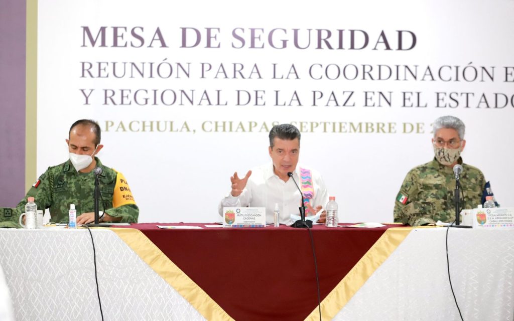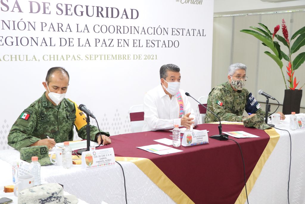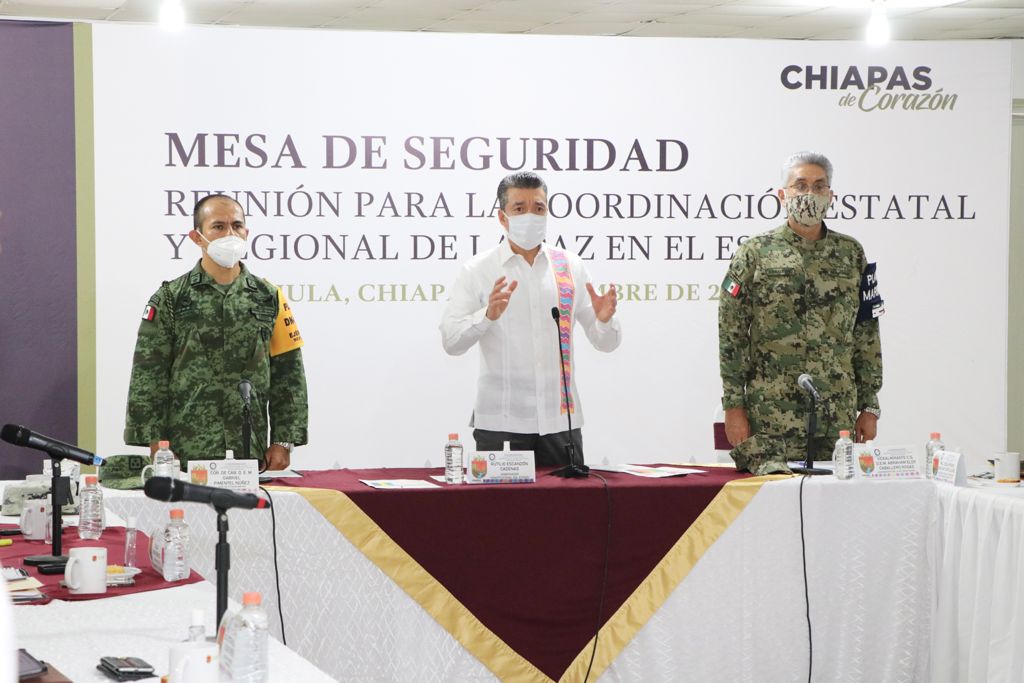 Al encabezar la Mesa de Coordinación Estatal para la Construcción de la Paz y Seguridad, desde el municipio de Tapachula, el gobernador Rutilio Escandón Cadenas sostuvo que Chiapas cuenta con hospitales, equipamiento, medicinas e insumos, y sobre todo un gran personal de salud, a fin de hacer frente a la pandemia, pero lo más importante es no bajar la guardia y acudir a vacunarse con el propósito de proteger la salud y vida ante el COVID-19.