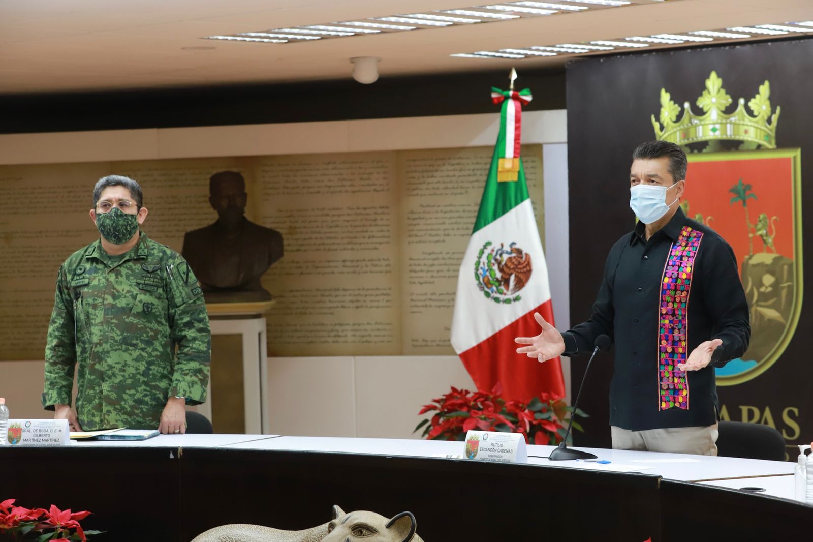 En el marco de la Mesa de Seguridad, el gobernador Rutilio Escandón Cadenas envió a las y los habitantes de Chiapas un mensaje de unidad, solidaridad y amor, y les deseó una Navidad llena de paz, armonía y esperanza, al tiempo de reiterar su voluntad y compromiso de seguir trabajando con lealtad y honestidad para lograr bienestar, desarrollo y progreso.