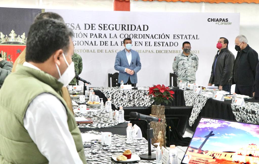 En el marco de la Mesa de Coordinación Estatal para la Construcción de la Paz y la Seguridad, en el municipio de San Cristóbal de Las Casas, el gobernador Rutilio Escandón Cadenas destacó que, de acuerdo con el último informe de seguridad que se dio a conocer durante la conferencia de prensa matutina, encabezada por el presidente Andrés Manuel López Obrador, Chiapas se ha posicionado en el primer lugar nacional con la tasa más baja en incidencia delictiva general.