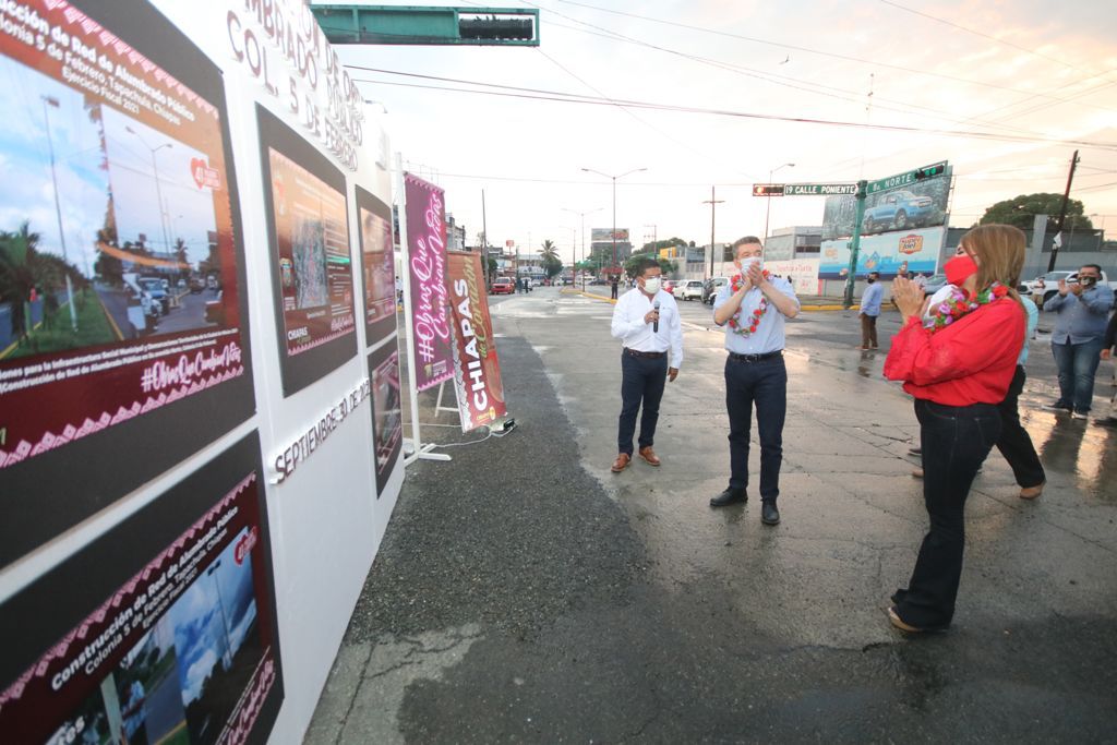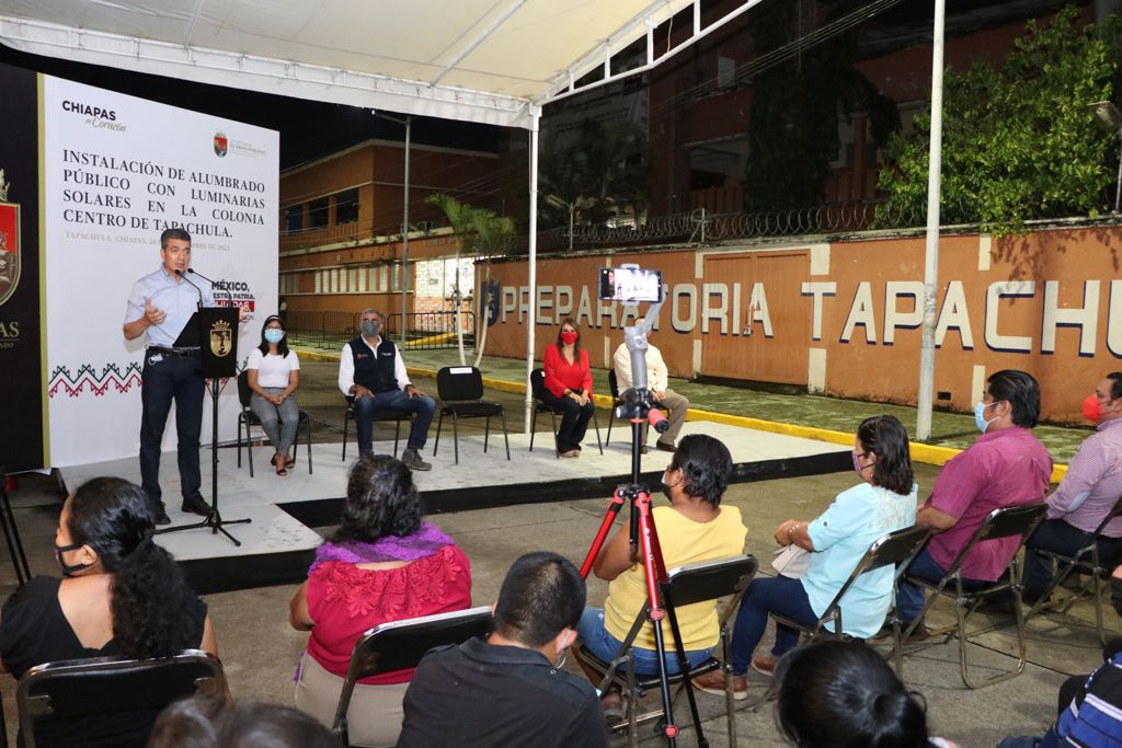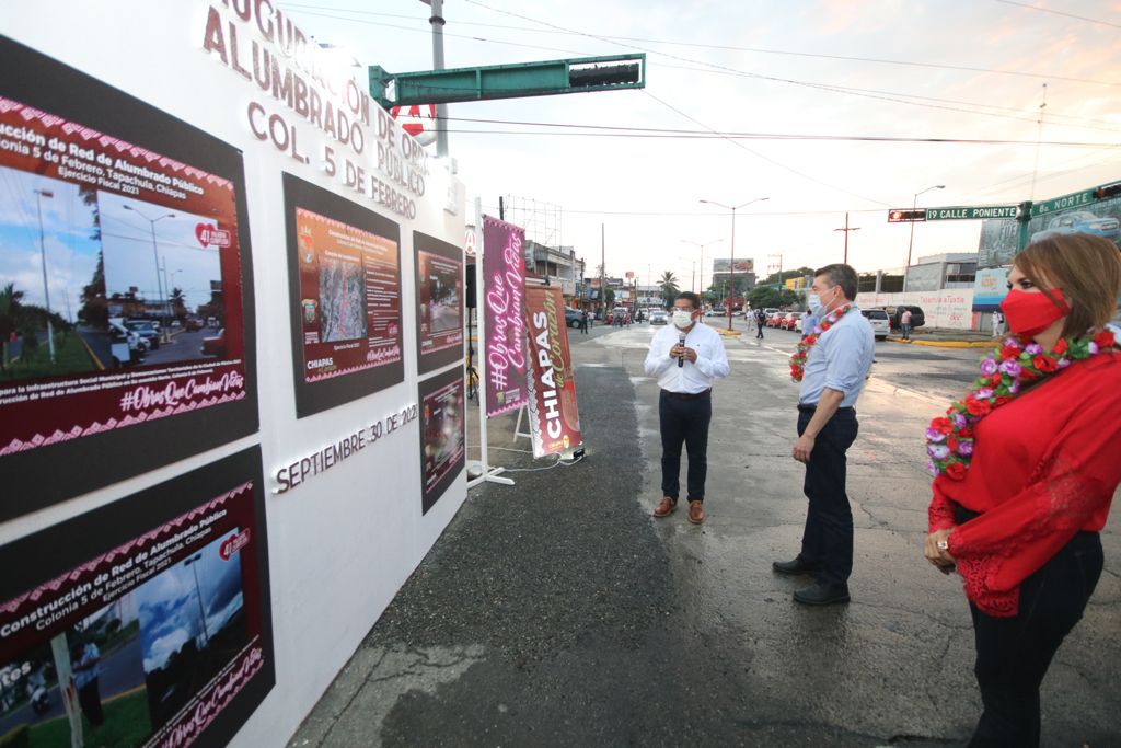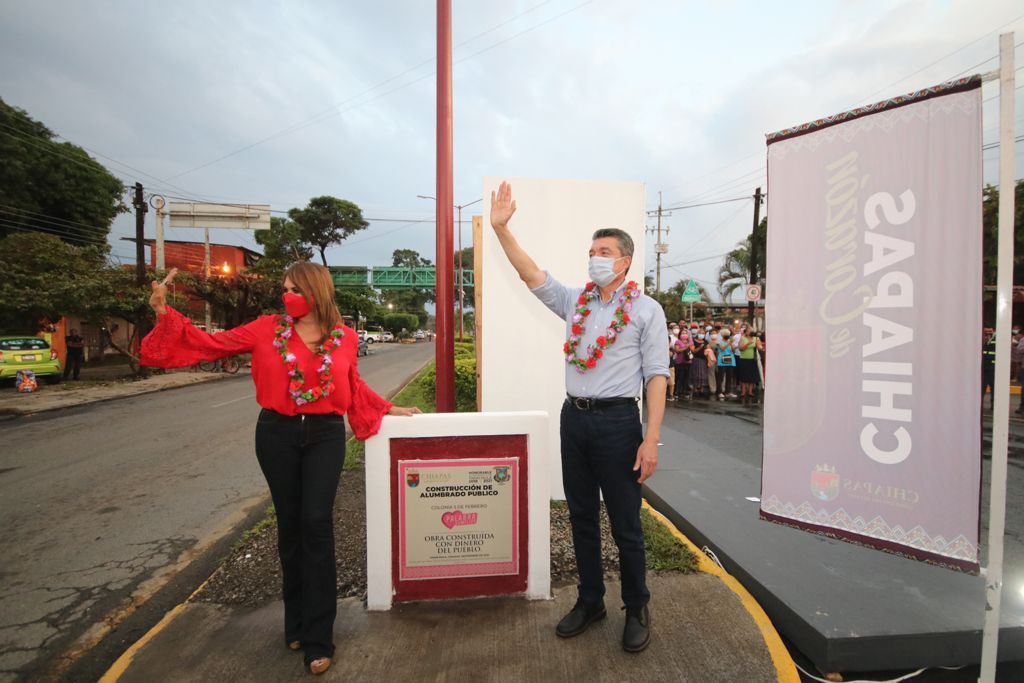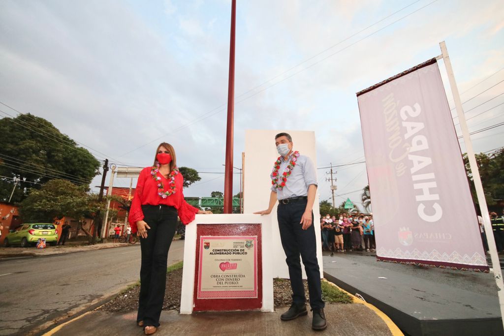 Al encabezar la inauguración de la instalación del alumbrado público en las colonias 5 de Febrero y Centro, del municipio de Tapachula, el gobernador Rutilio Escandón Cadenas sostuvo que además de contribuir a una mejor iluminación de las vialidades, estas acciones prioritarias fortalecen la seguridad, movilidad y bienestar de quienes habitan, visitan y transitan por la Perla del Soconusco.