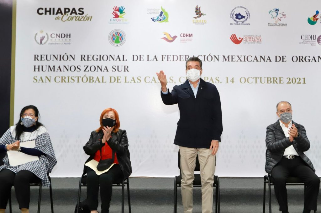 Durante la reunión de la Federación Mexicana de Organismos Públicos de Derechos Humanos, Zona Sur, que contó con la presencia de la presidenta de la Comisión Nacional de los Derechos Humanos (CNDH), Rosario Piedra Ibarra, el gobernador Rutilio Escandón Cadenas destacó que los Gobiernos Federal y Estatal trabajan como un solo ente para velar por el bien común, garantizar los derechos fundamentales y encontrar soluciones que aporten al progreso de Chiapas y de México.