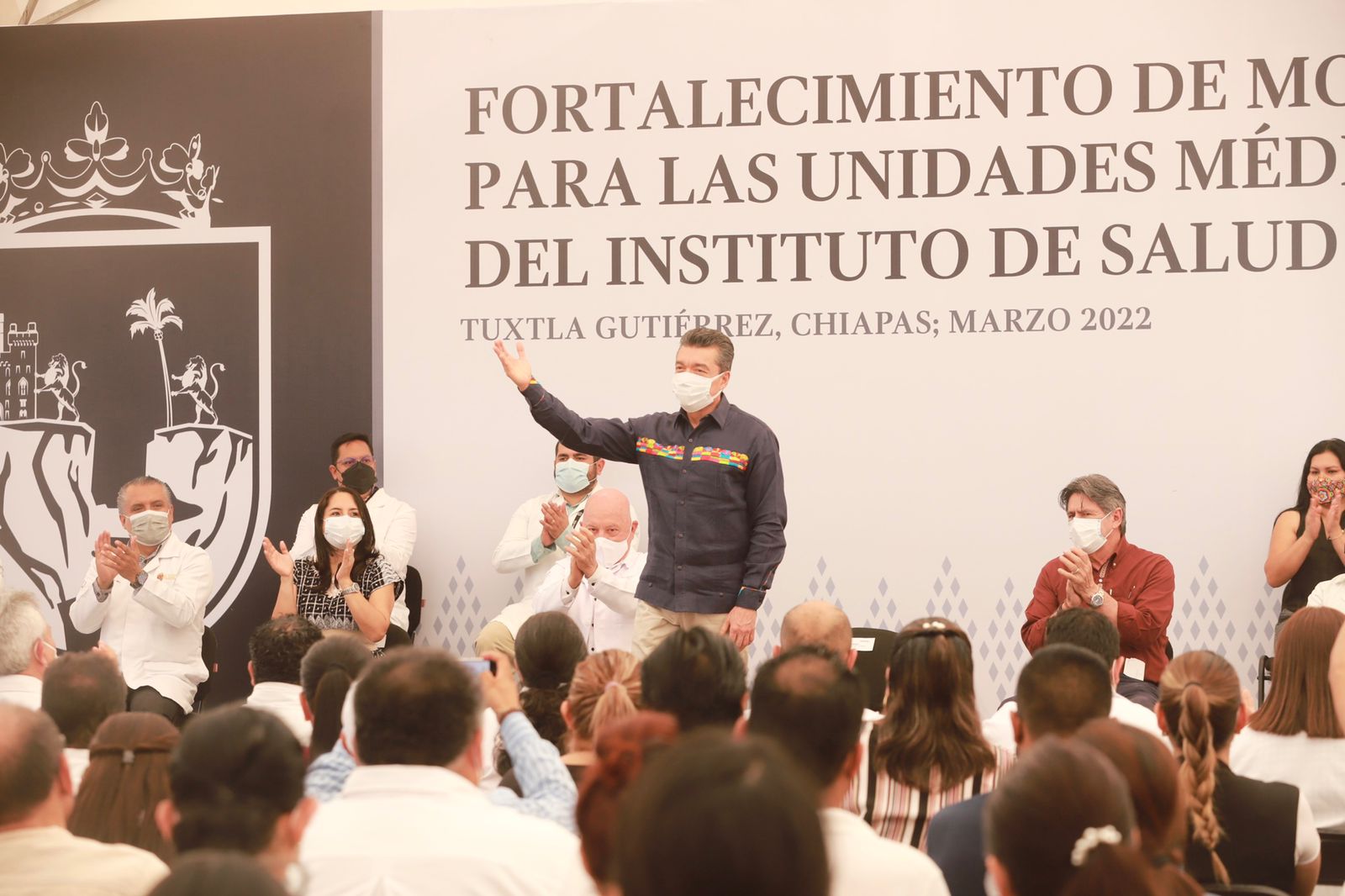 En este sentido, el gobernador Rutilio Escandón Cadena destacó que la salud es un tema prioritario para su gobierno, por eso se realiza un gran esfuerzo y se camina con pasos gigantes, porque la meta es que, al concluir la actual administración, los más de mil hospitales y clínicas queden reconvertidas, reconstruidas, ampliadas, con mantenimiento, equipamientos, medicinas, insumos y sobre todo con el personal médico y especializado necesario para prevenir enfermedades y cuidar la salud de las y los chiapanecos.