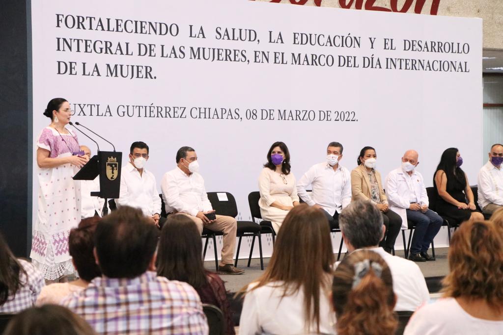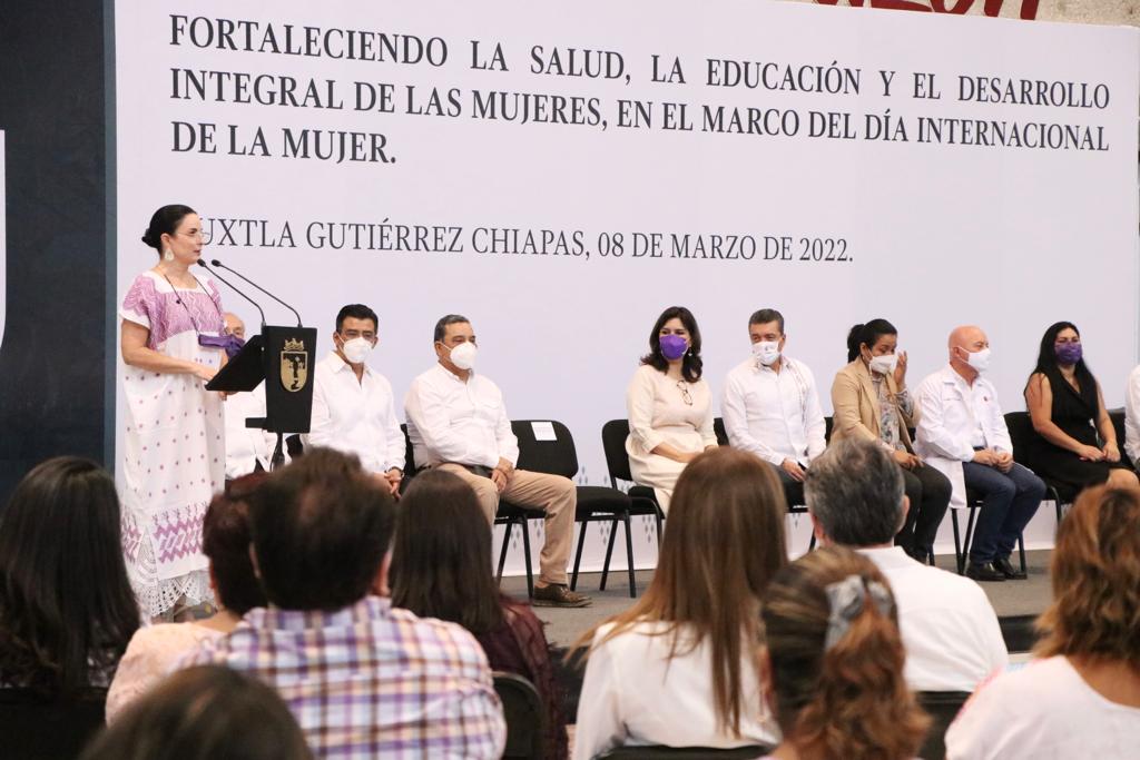 Reconoció que, aunque aún hay mucho qué hacer, en Chiapas se avanza para que no haya simulación y se trabaja a favor de las mujeres, a fin de que sumen su capacidad y talento al esfuerzo de sacar adelante a la entidad, y que las niñas y mujeres puedan vivir en entornos libres de violencia.