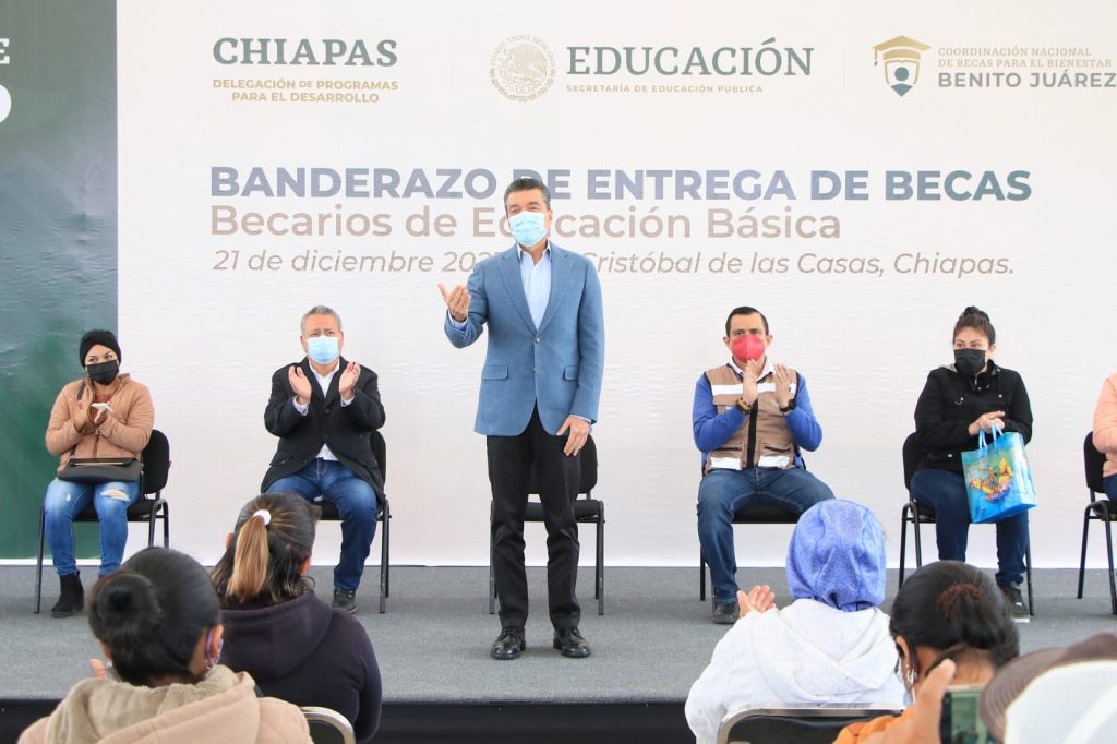 En San Cristóbal de Las Casas, el gobernador Rutilio Escandón Cadenas encabezó el arranque del operativo de entrega de apoyos del Programa “Becas de Educación Básica para el Bienestar Benito Juárez”, donde sostuvo que su gobierno trabaja junto al presidente Andrés Manuel López Obrador en la misión de apoyar la educación de la niñez y la juventud, a fin de brindarles mejores oportunidades de cumplir sus aspiraciones y alcanzar un mejor porvenir.