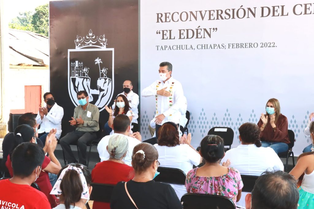 En el ejido El Edén, del municipio de Tapachula, se reconvirtió el Centro de Salud con la finalidad de otorgar una atención digna y cálida, mediante el fortalecimiento de la infraestructura que permita brindar servicios oportunos, eficientes y resolutivos, tanto a la población de este municipio, como a las personas en condición de migración.