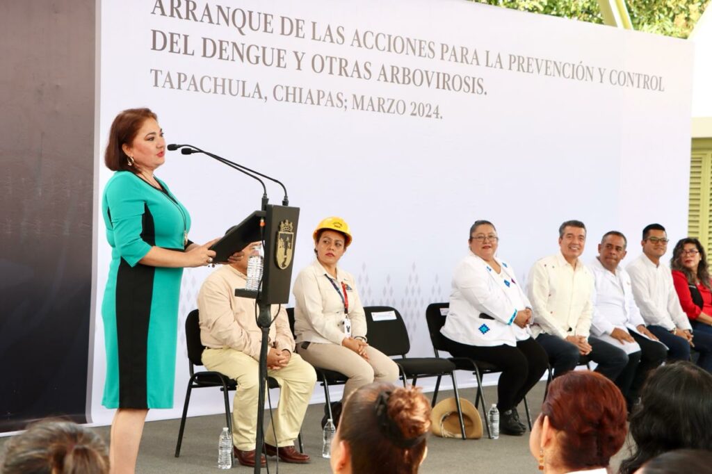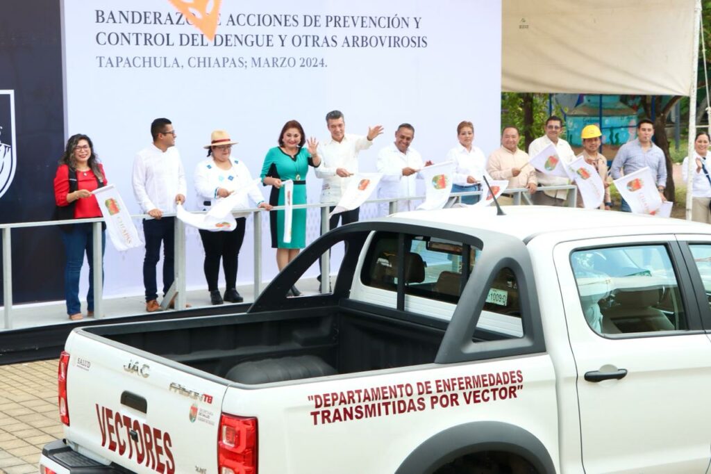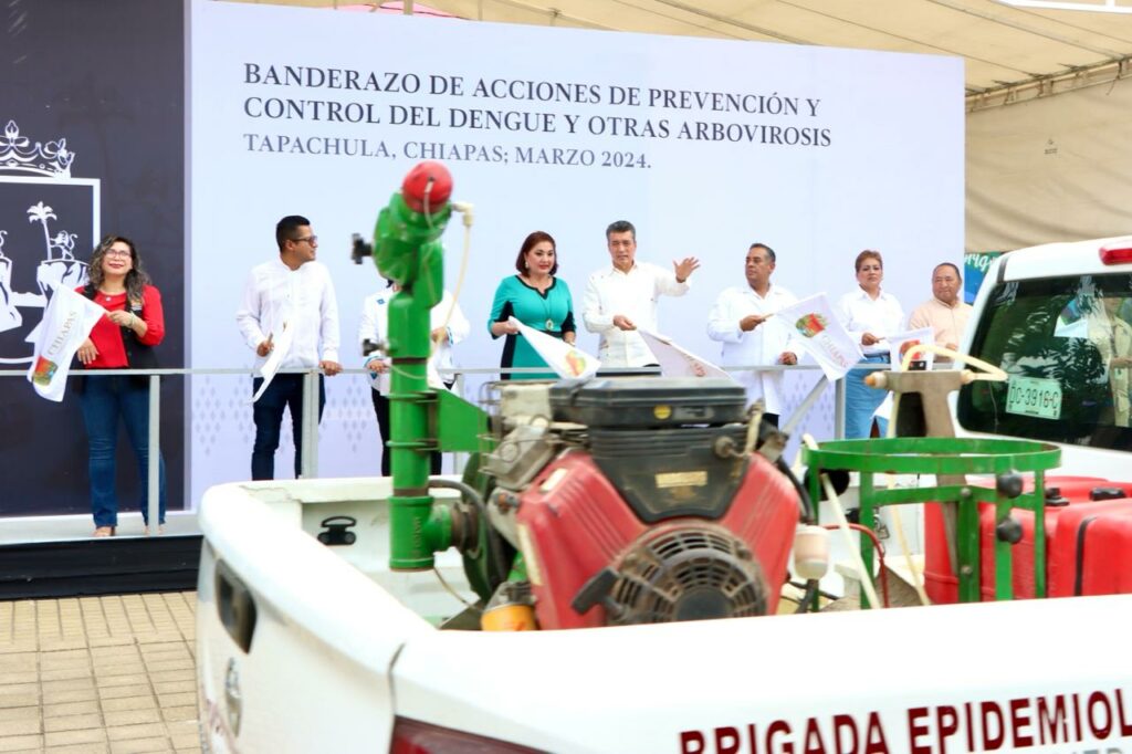 En Tapachula, el gobernador Rutilio Escandón Cadenas dio el banderazo de inicio del operativo contra el dengue y otras arbovirosis, así como el reforzamiento del área de vectores con entrega de insumos y equipamiento, con el objetivo de prevenir y cuidar la salud de la población ante este tipo de enfermedades.