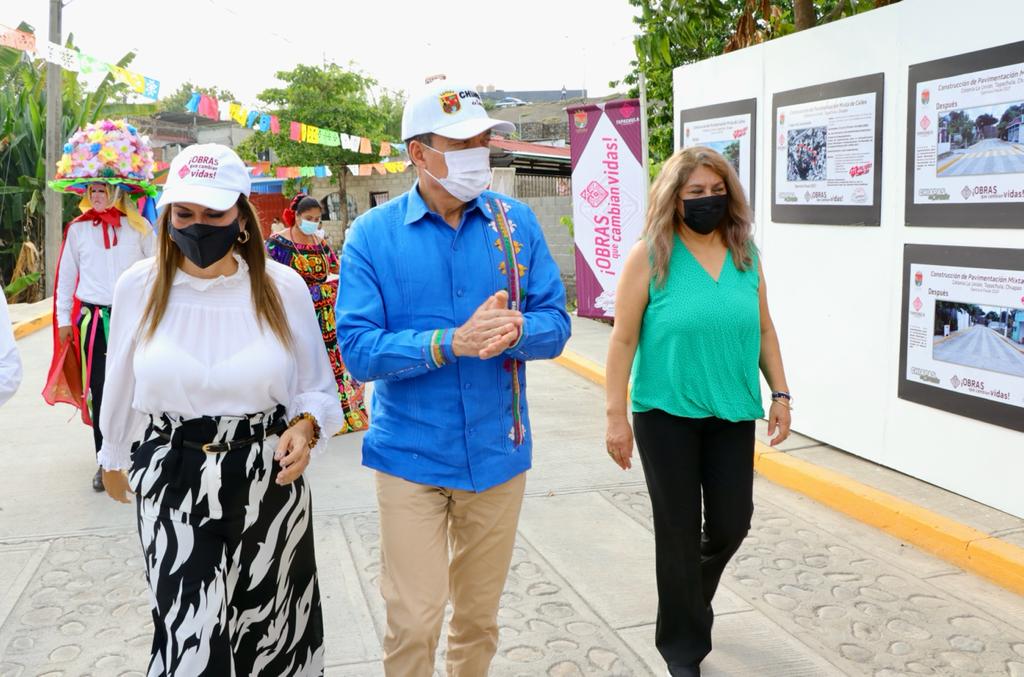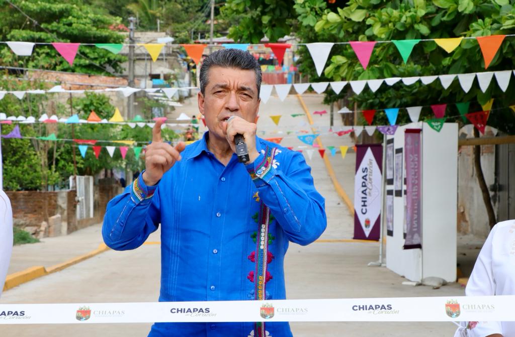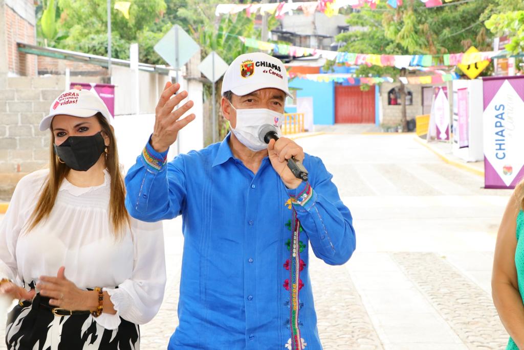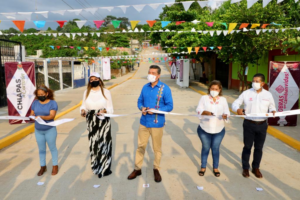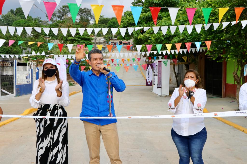 En Tonalá y Tapachula, Rutilio Escandón inaugura camino, calles y red de alumbrado público