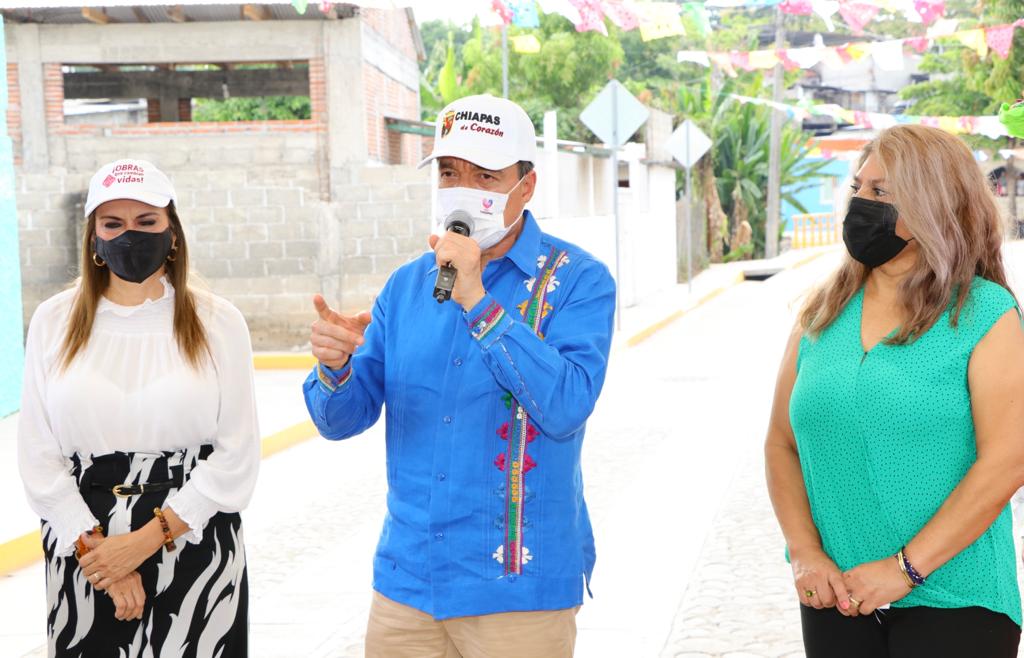 Al inaugurar el camino Tres Picos-Estación Mojarras destacó que este tramo carretero favorece a las comunidades de Estación Mojarras, Pueblo Nuevo, Ponte Duro, Manguito, Barrio Pobre y Tres Picos, conectándolas con la cabecera municipal de Tonalá y con la capital chiapaneca: “Queremos que el presupuesto sirva para sacar adelante las aspiraciones de las y los chiapanecos. Vemos la diferencia, antes teníamos sueños y hoy vemos realidades”.
