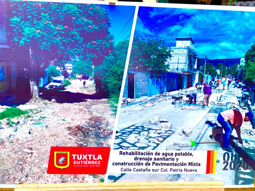 Durante la inauguración de las obras de pavimentación de calles en la Colonia Patria Nueva, del municipio de Tuxtla Gutiérrez, el gobernador Rutilio Escandón Cadenas señaló que es motivo de satisfacción poder constatar que este tipo de acciones de impacto social abonan a la transformación de la imagen urbana de la ciudad y brindan a la ciudadanía la posibilidad de transitarlas con mayor seguridad.