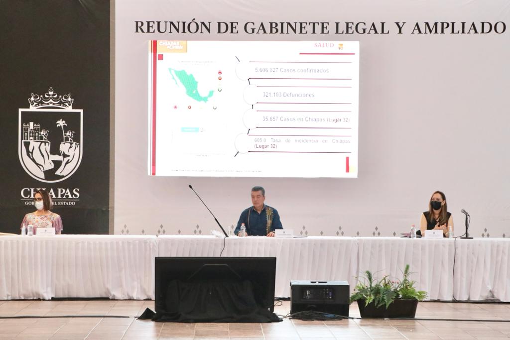 Aunque la entidad registra cero riesgos y permanece en semáforo verde, se dio a conocer que continuarán los recorridos en las comunidades para verificar los niveles de riesgo y garantizar mayor protección. Además, se comunicó que el Gobierno de Chiapas asistirá a la Reunión Nacional del Consejo de Seguridad en Salud, donde planteará la iniciativa de atención primaria a la salud, como eje rector en el abordaje a la pandemia en la entidad.