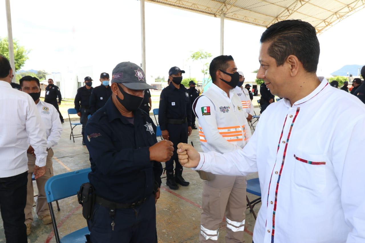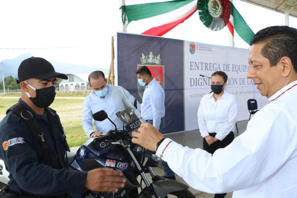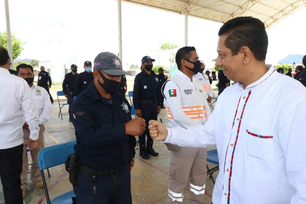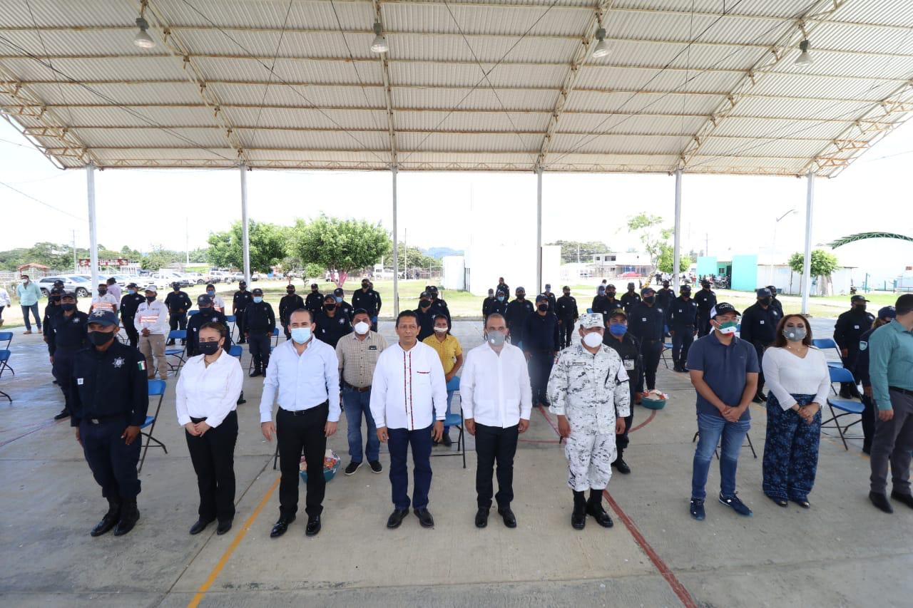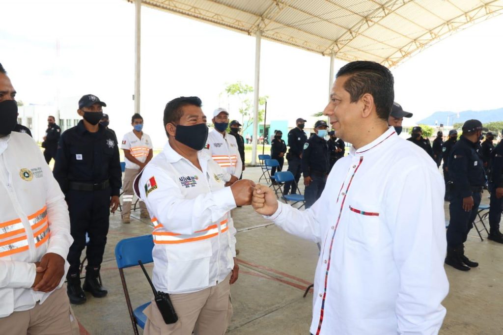 Acompañado por Roberto Pinto Kanter, presidente municipal de Altamirano; Gabriela del Socorro Zepeda Soto, secretaria de Seguridad y Protección Ciudadana; Sergio Alejandro Aguilar Rivera, secretario ejecutivo del Sistema Estatal de Seguridad Pública; y Bernardo Cortez Arena, representante de la Guardia Nacional, Llaven Abarca expuso que el fortalecimiento a las y los primeros respondientes contribuirá al mejoramiento de sus capacidades en las estrategias de prevención y combate de conductas delictivas que impulsa el gobernador Rutilio Escandón Cadenas.