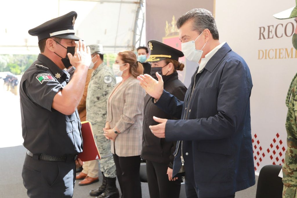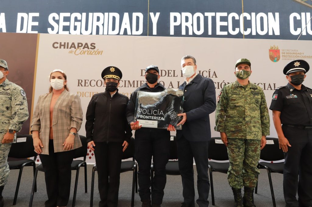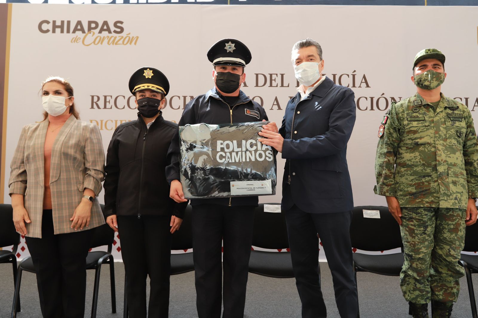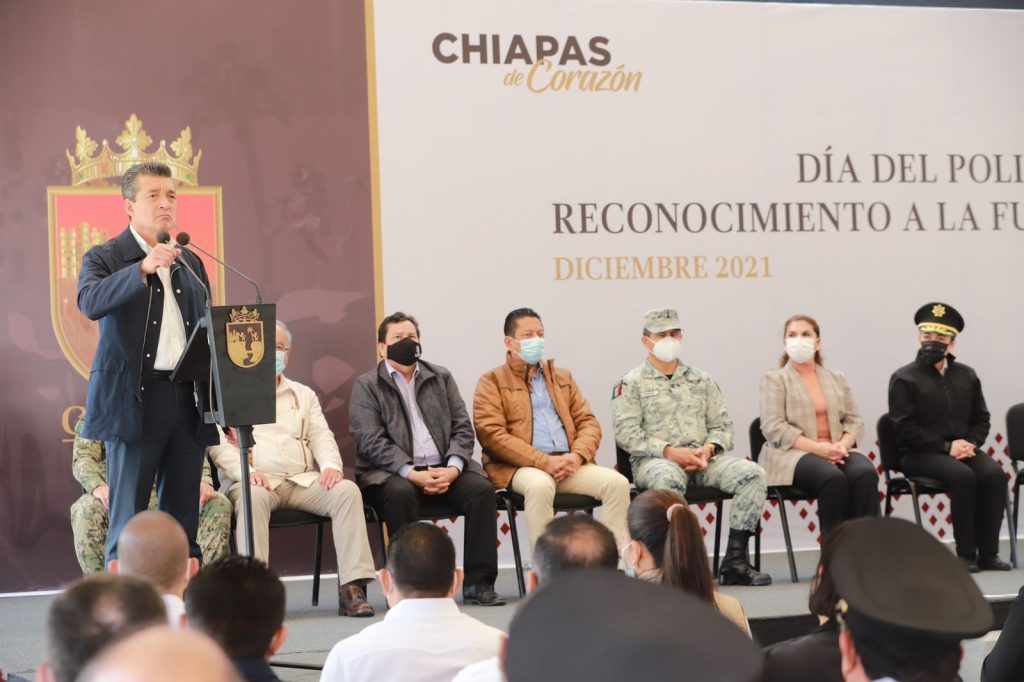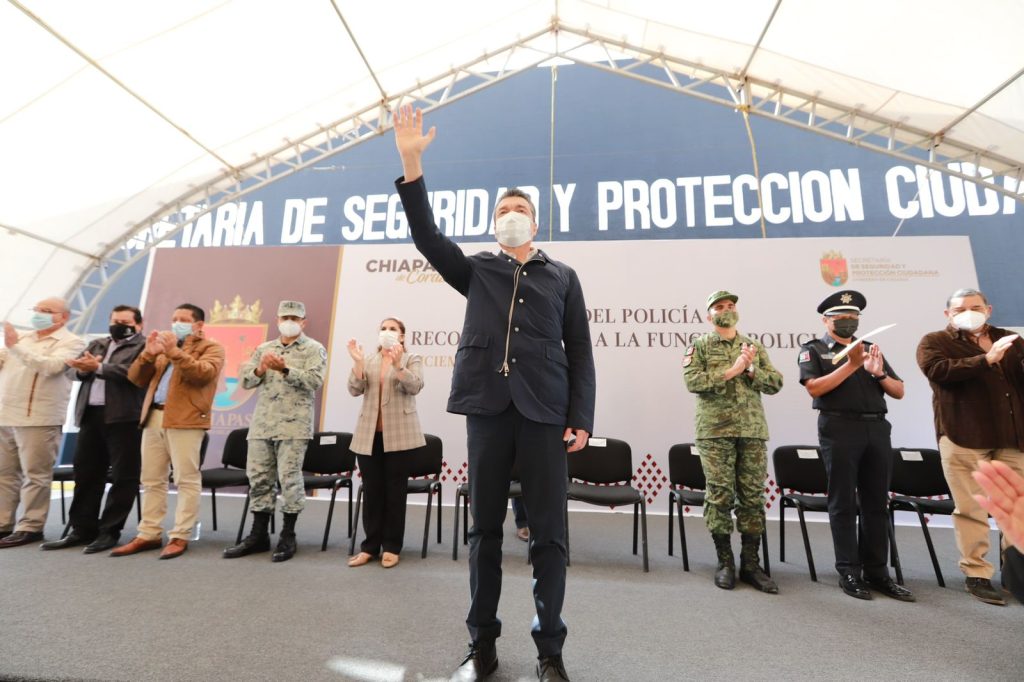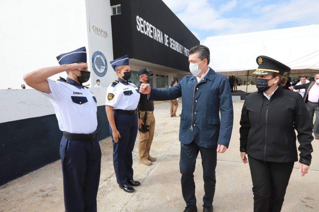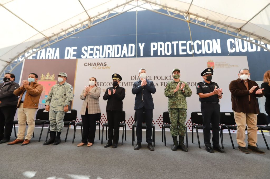 “Es un honor estar con ustedes en este día tan especial porque son servidores públicos que arriesgan su propia vida para que la ciudadanía tenga protección. Continuará el apoyo a la policía, cualquier recurso que tengamos será para dignificar su labor y que sigan creciendo. Seguiremos haciendo economías y ahorros, gracias al combate a la corrupción, a fin de que ese dinero se invierta en el bienestar de las y los policías y sus familias. Estaremos pendientes de que los recursos públicos, a través de ustedes, regresen al pueblo de Chiapas”, apuntó.