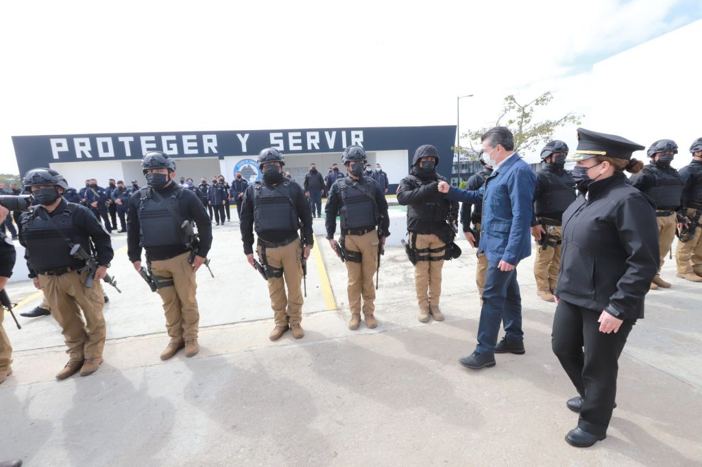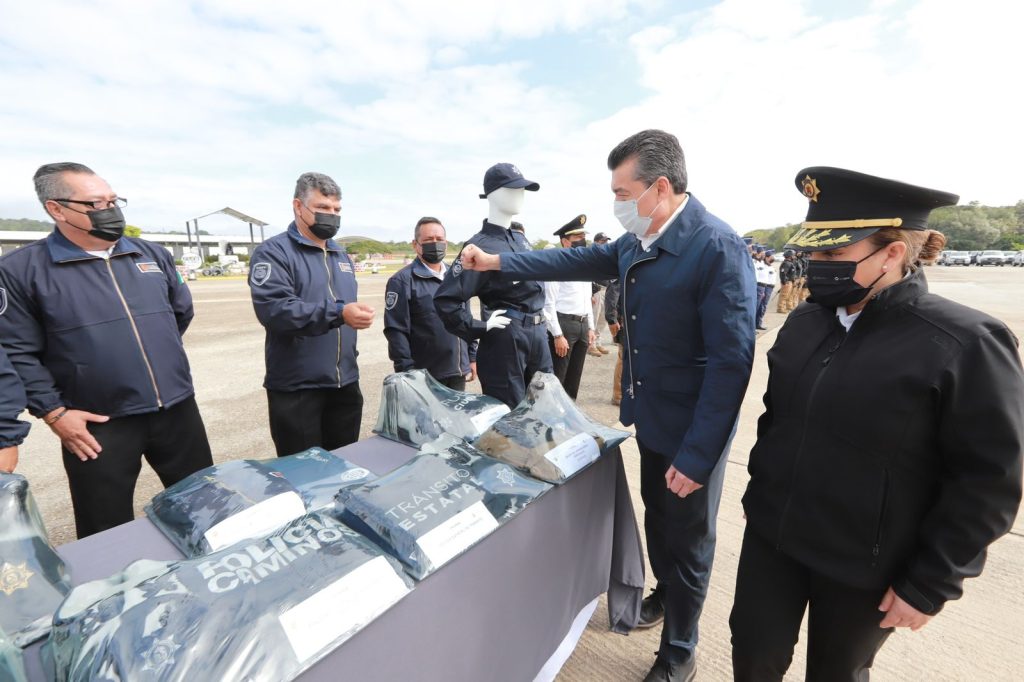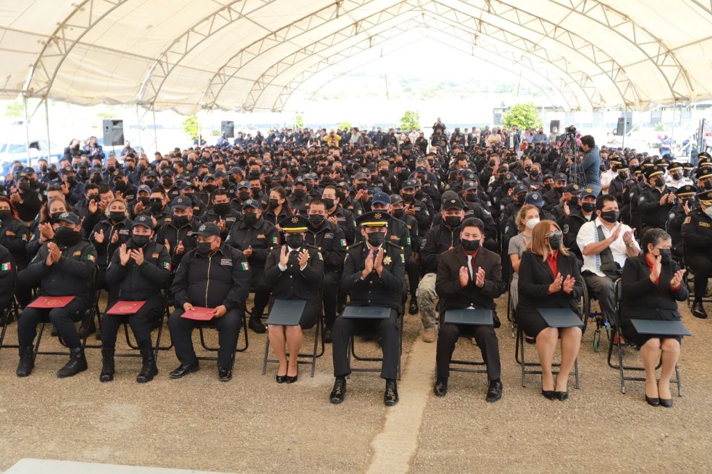 En este marco, junto a la secretaria de Seguridad y Protección Ciudadana, Gabriela del Socorro Zepeda Soto, el mandatario otorgó uniformes a policías, y entregó certificados a graduadas y graduados de las licenciaturas en Seguridad y Protección Ciudadana, y en Derecho con Terminal en Proceso Adversarial, a quienes felicitó por el sacrificio realizado para prepararse y poner sus conocimientos al servicio de la gente.