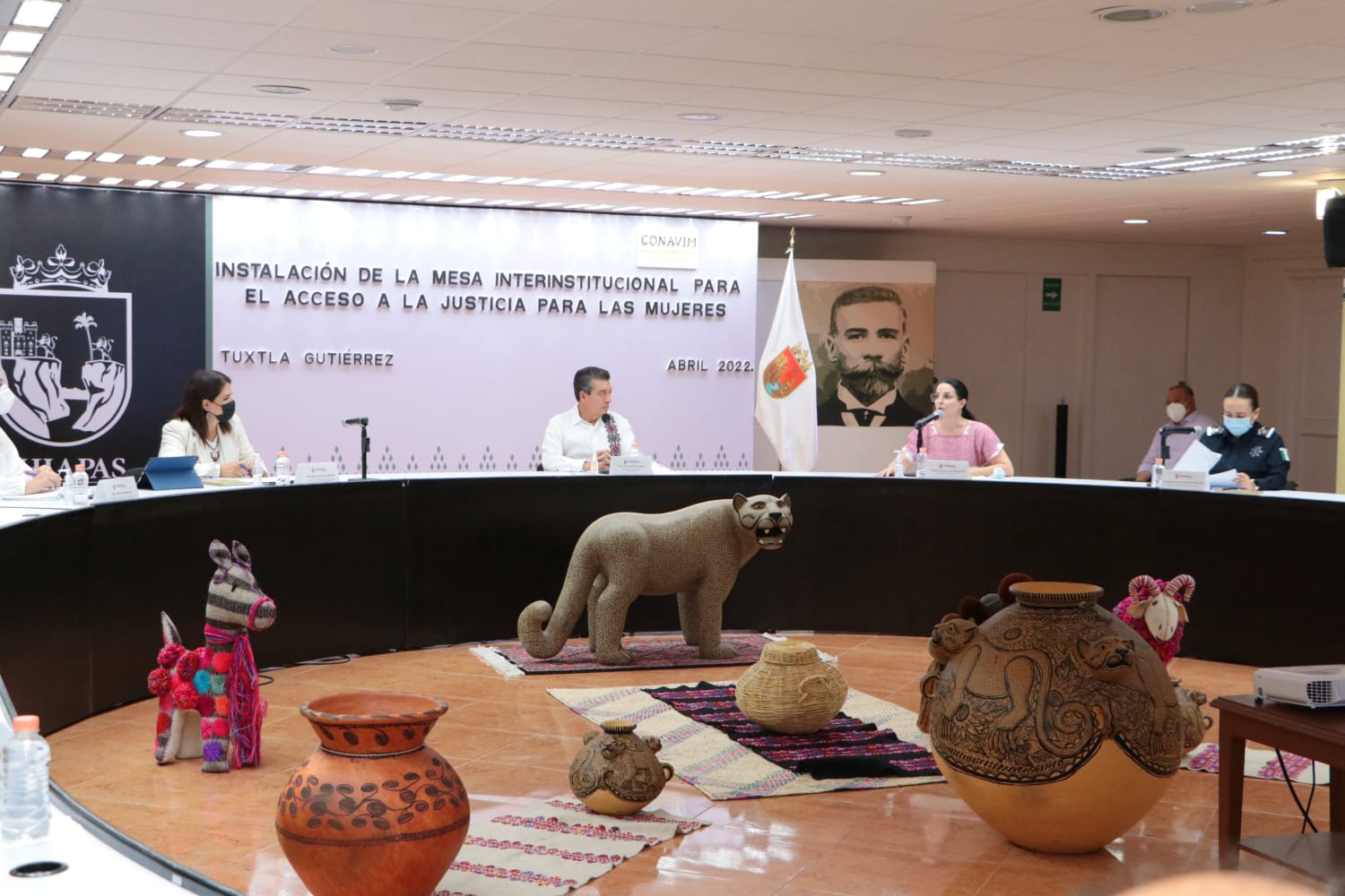 Al encabezar la instalación de la Mesa Interinstitucional para el Acceso a la Justicia para las Mujeres, el gobernador Rutilio Escandón Cadenas sostuvo que este tipo de acciones prioritarias y sensibles motivan a todas las instituciones a sumar esfuerzos, recursos y voluntades, con el objetivo de atender, proteger, dar bienestar y garantizar el respeto a los derechos humanos y al acceso a una vida libre de violencia a las niñas y mujeres, pues hacerlo, dijo, no es un privilegio sino un acto de justicia social.