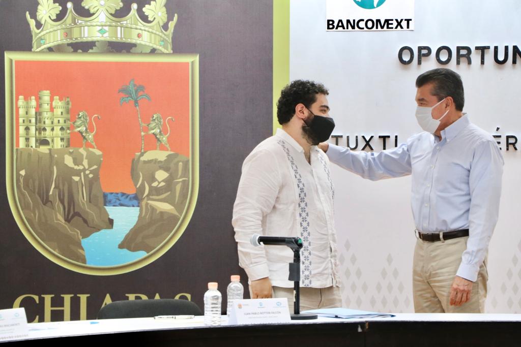- El director de Nafin y Bancomext, Juan Pablo De Botton, informó que la colocación de recursos en Chiapas, ante la pandemia, asciende a 4 mil 350 mdp en beneficio de 41 mil 355 negocios