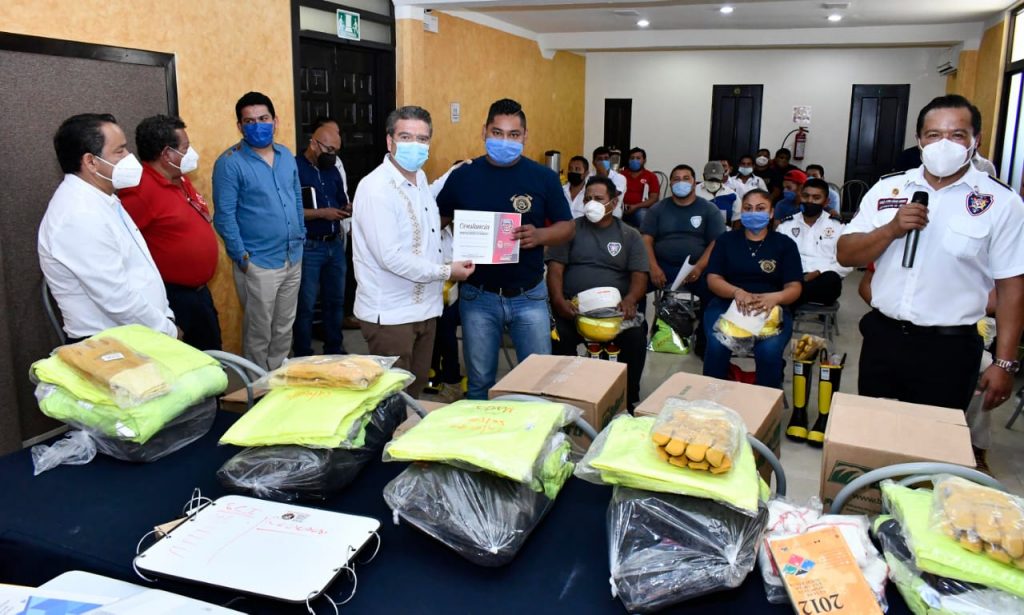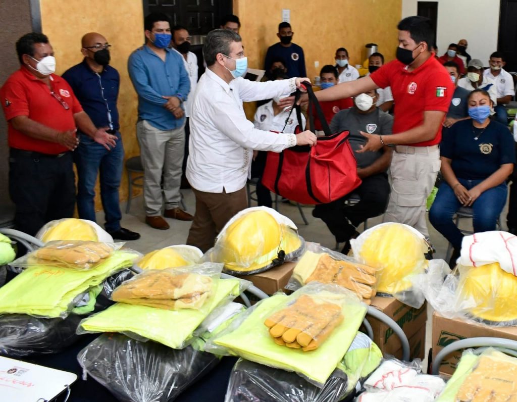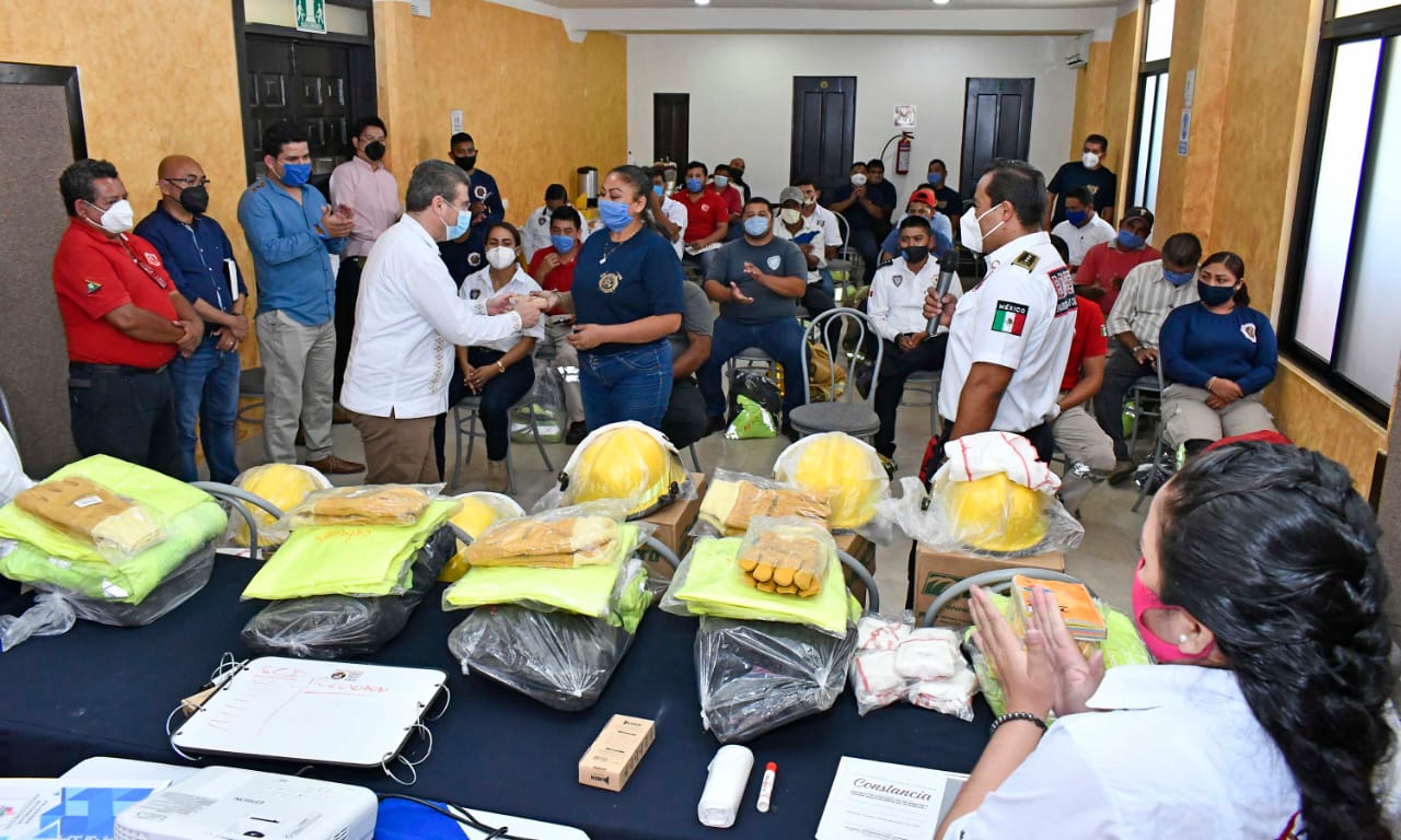 La entrega de constancias fue del curso regional sobre “Sistema de comando de incidentes, primer respondiente en incendios”; mientras que el equipamiento consistió en dotación de botas, cascos, chalecos, chamarras y guantes propios para el desempeño de sus actividades y de protección personal.