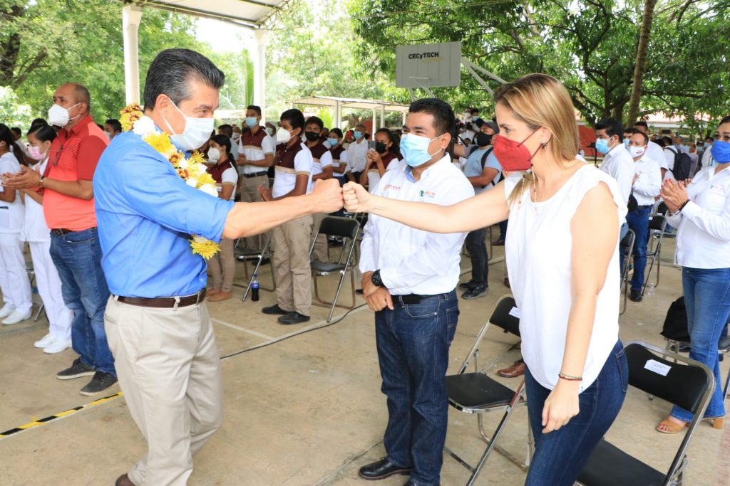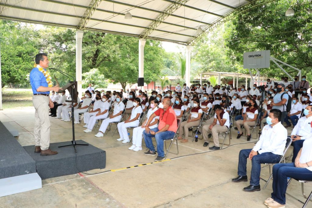 Al inaugurar el laboratorio de Enfermería, dos aulas didácticas con equipamiento y obra de mejoramiento exterior en el Plantel 06 del Colegio de Estudios Científicos y Tecnológicos de Chiapas (Cecyte Chiapas) en el municipio de Acapetahua, el gobernador Rutilio Escandón Cadenas subrayó que gracias a los ahorros, la generación de economías y el combate a la corrupción, el presupuesto alcanza para atender eficientemente las necesidades más urgentes del pueblo en rubros como el educativo, así como en los de campo, salud y seguridad.