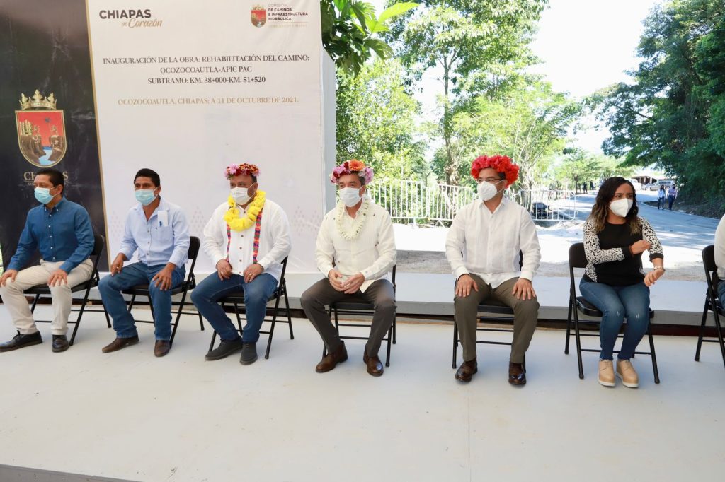 El gobernador Rutilio Escandón Cadenas inauguró la rehabilitación de 13.5 kilómetros del camino Ocozocoautla-Apic Pac, que beneficiará a más de siete mil habitantes de más de 30 comunidades rurales, ya que mejorará la comunicación con la cabecera municipal, ampliando la oportunidad de que se incorporen a las actividades socioeconómicas del estado.