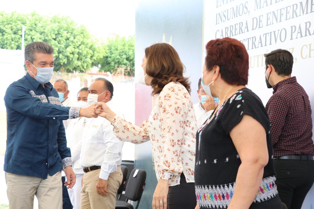 En este marco, el mandatario agradeció el respaldo que el presidente de la República, Andrés Manuel López Obrador, otorga a Chiapas en materia de educación, mediante programas de mejoramiento de la infraestructura, las becas para estudiantes de todos los niveles académicos, y el establecimiento de 14 Universidades “Benito Juárez”, lo que permite a las y los jóvenes continuar, de manera gratuita, con sus estudios profesionales.