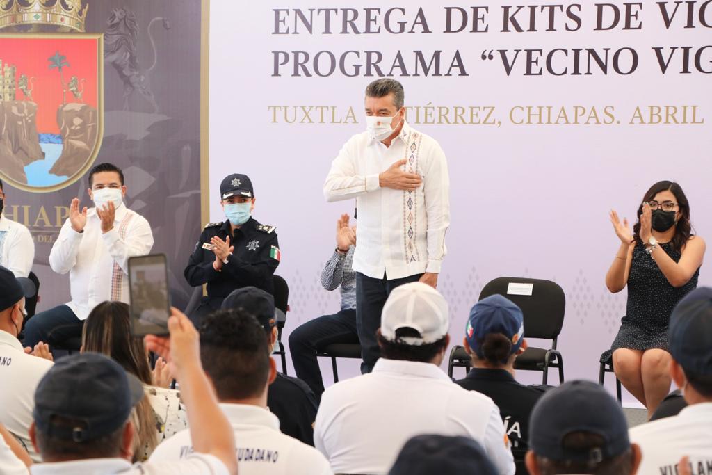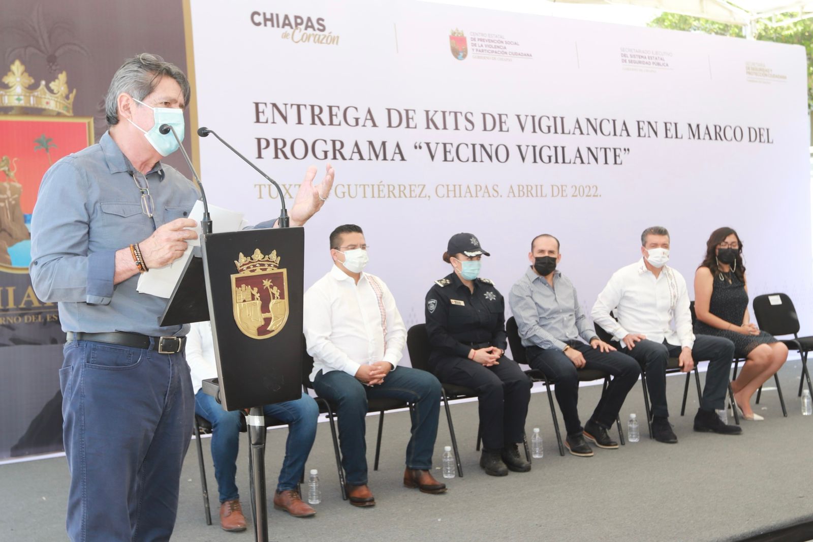 Como parte del trabajo conjunto entre autoridades y ciudadanía a favor de la prevención y la seguridad, el gobernador Rutilio Escandón Cadenas entregó 238 paquetes de vigilancia para fortalecer el Programa “Vecino Vigilante” en los municipios de Tuxtla Gutiérrez, Ocozocoautla y Berriozábal.